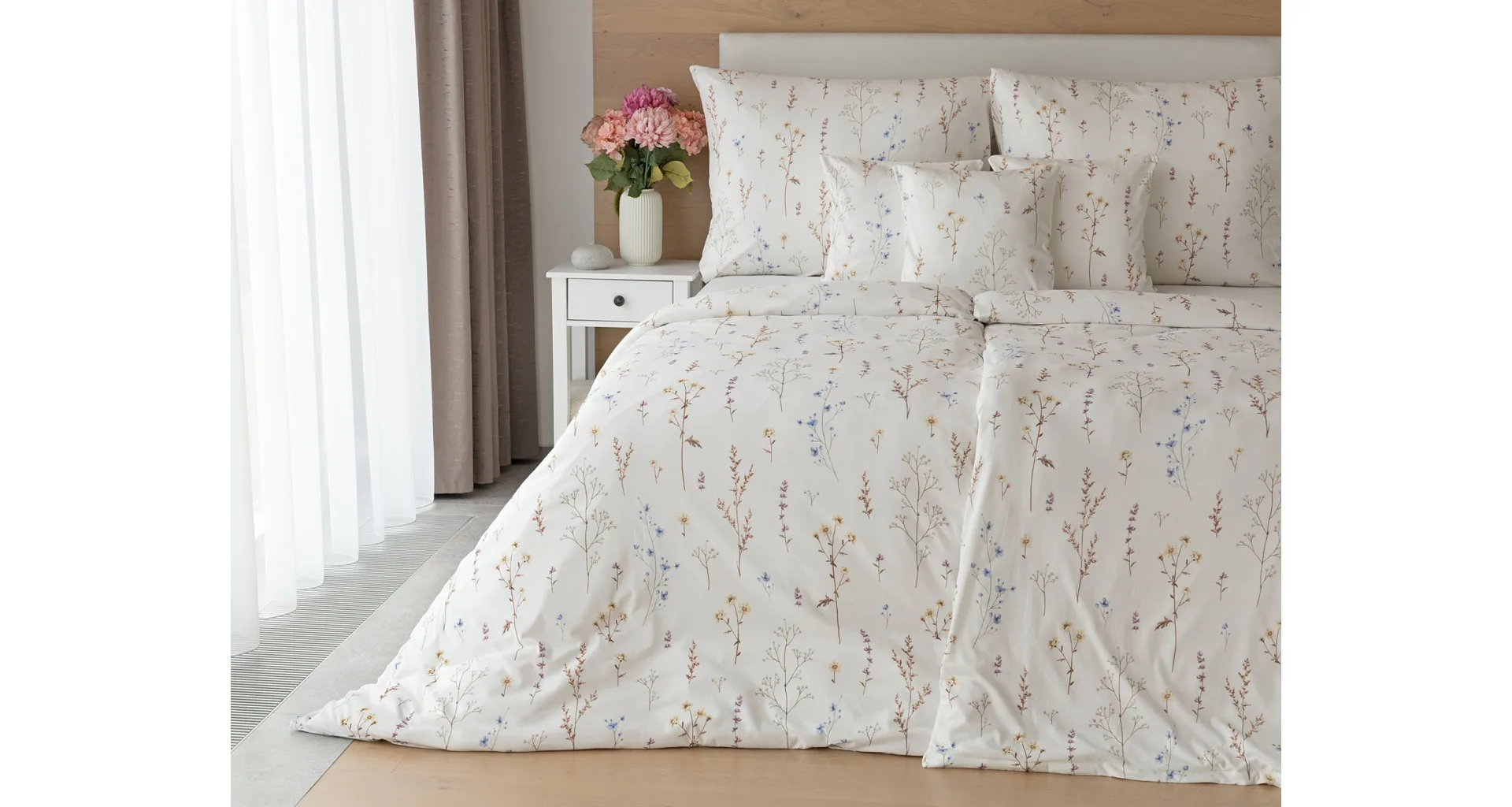 Pro novou kolekci ložního povlečení Mako jersey jsme pečlivě vybírali motivy, které tomuto pružnému materiálu sluší. Vzor Paloma s motivem drobných bylinek na sněhově bílém podkladu vnese do vaší ložnice jemný rustikální nádech.