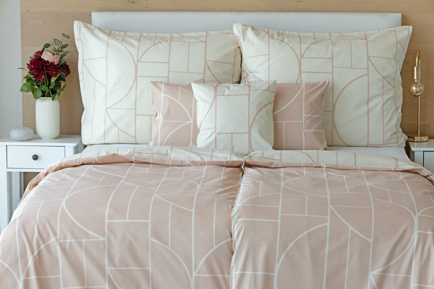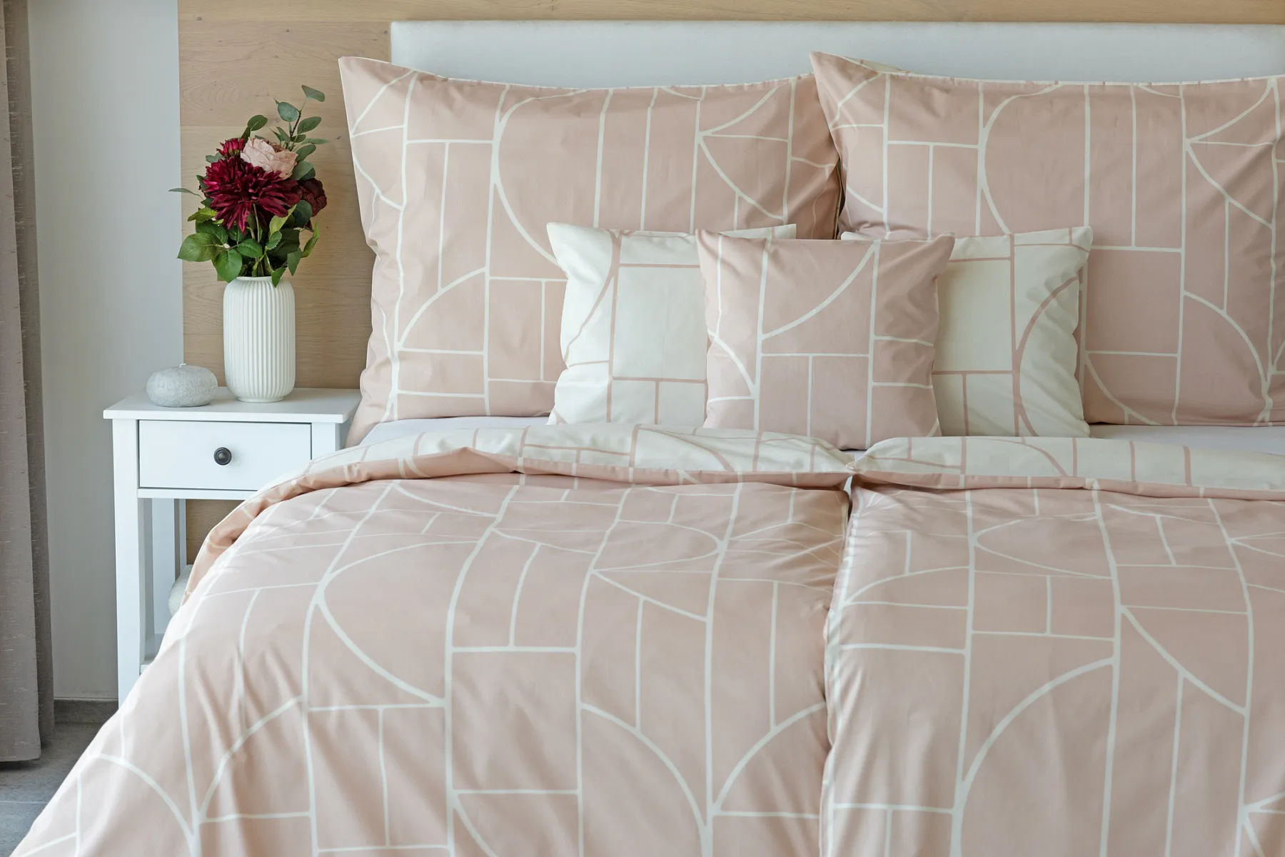 Dopřejte své ložnici nádech střídmé elegance s něžným bavlněným povlečením Paola. V jemné geometrii se snoubí pastelové tóny světle pudrové a krémové barvy. Povlečení Paola vnese do interiéru harmonii a díky oblíbenému oboustrannému provedení si užijete hravé stlaní.