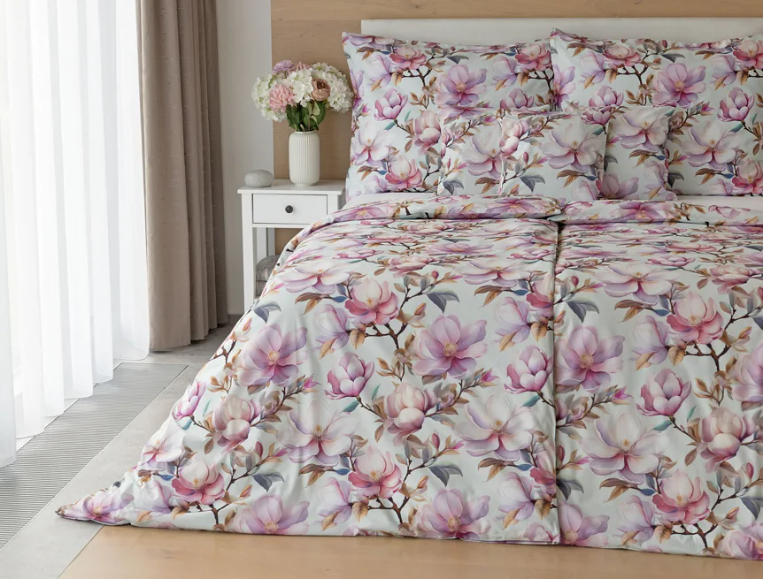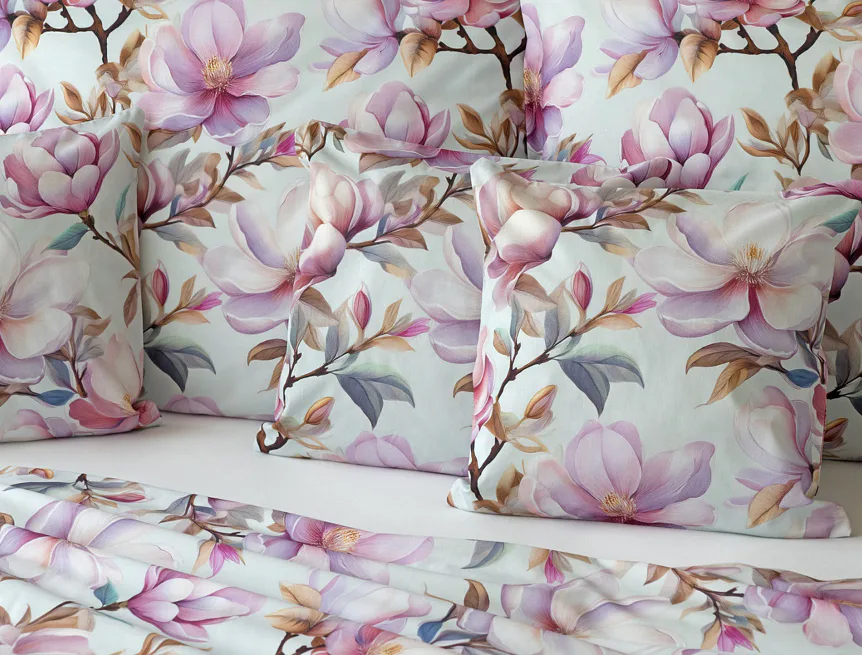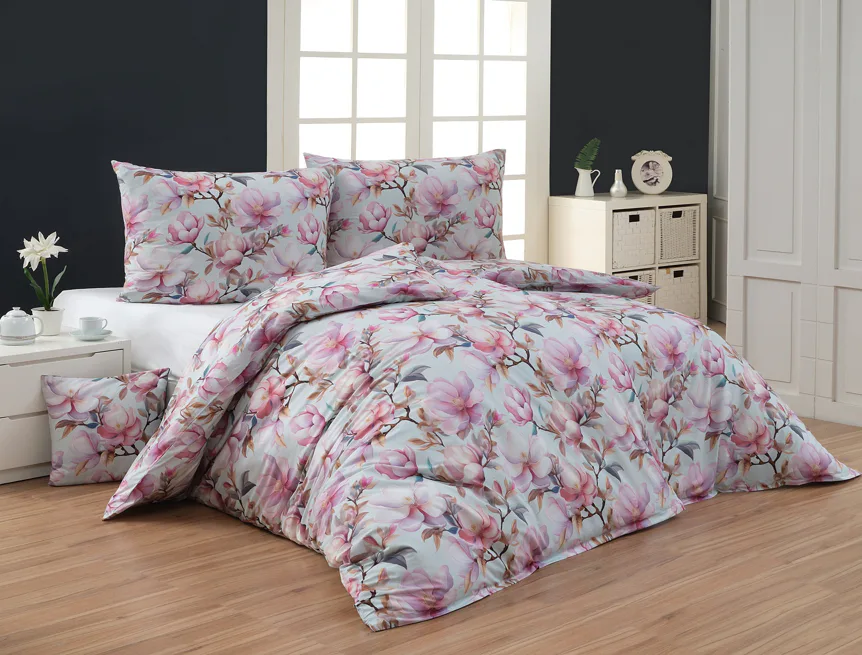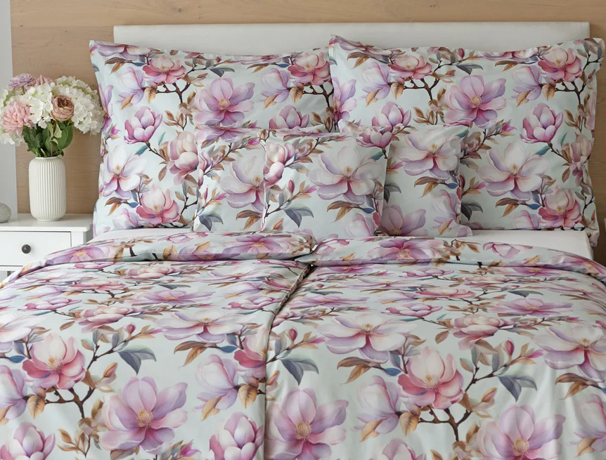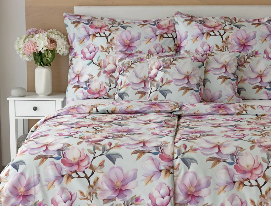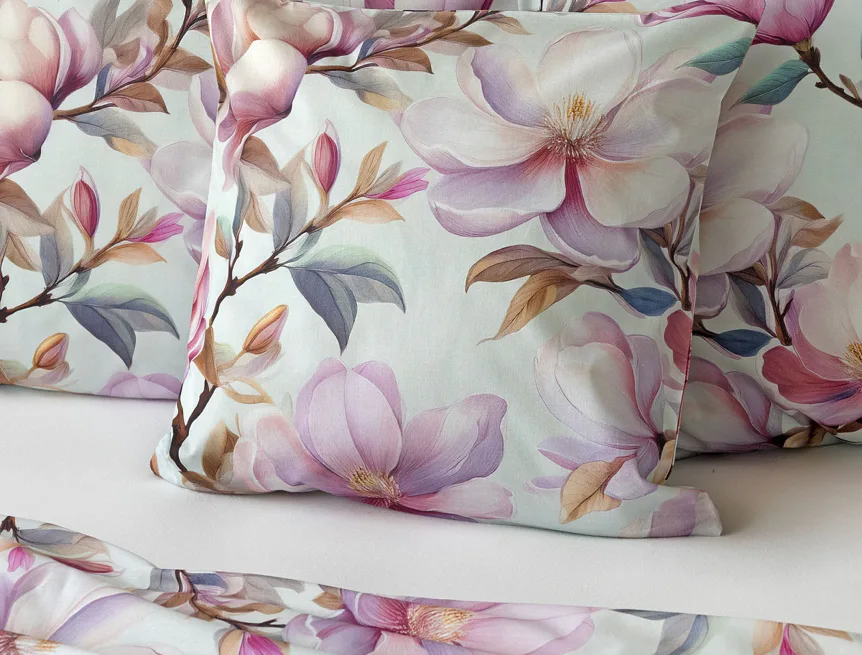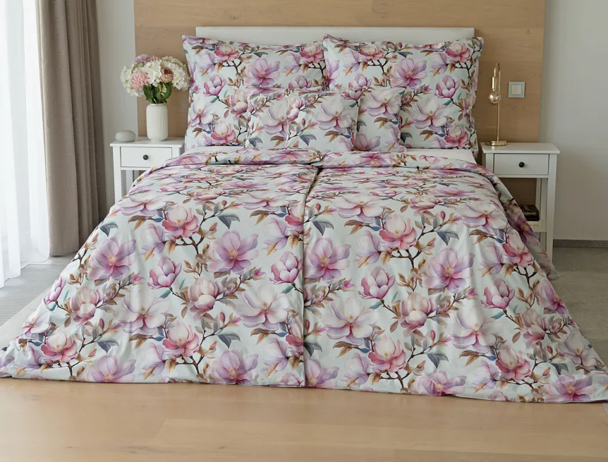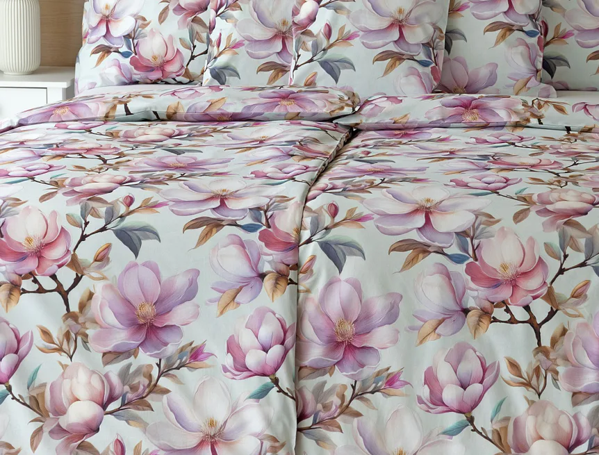 Bavlněné povlečení Pinkie vás okouzlí na první pohled originálním květinovým vzorem, kterému dominují odstíny pudrové a růžové barvy, doplněné jemnými prvky v paletě hnědých a petrolejových tónů. Květinový motiv je zasazen do tlumeného modrozeleného podkladu a díky nejmodernějšímu digitálnímu tisku vyniká v precizním detailu.