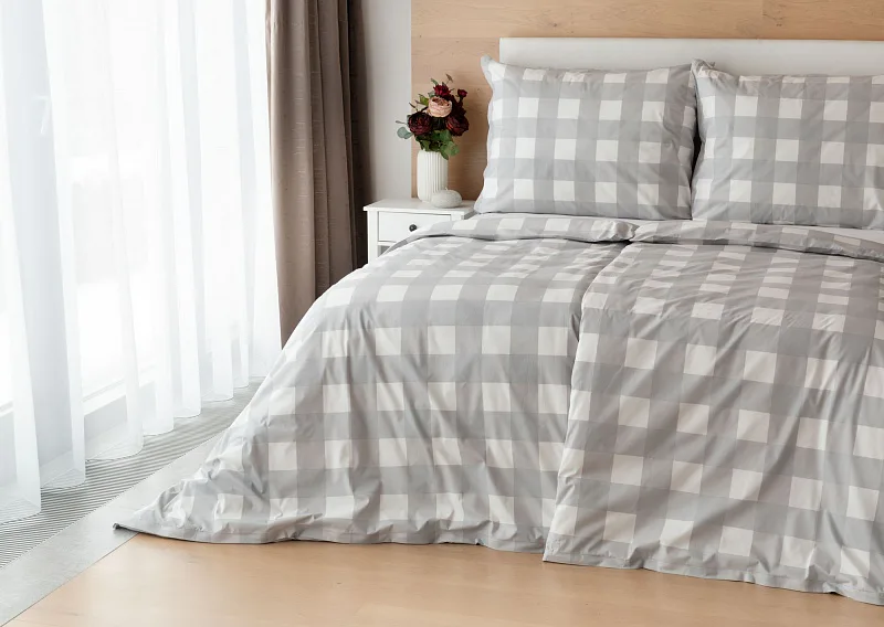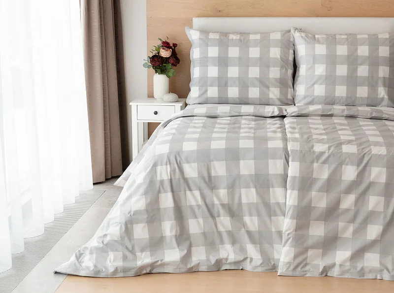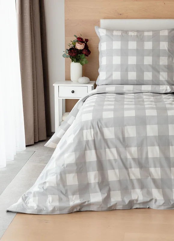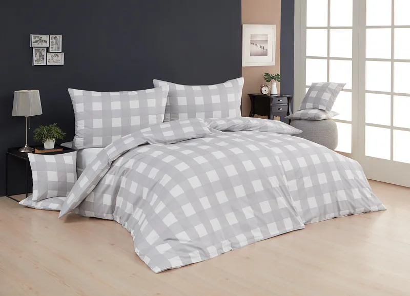 Ložní povlečení Quadro Grey potěší milovníky moderního i rustikálního stylu bydlení. Nadčasový kostkovaný vzor v odstínech šedé a krémově bílé se stane vkusným doplňkem každé ložnice bez ohledu na interiérový design. Neutrální šedé tóny navodí příjemnou domácí atmosféru v každé roční době. Přes den se budete těšit z krásné ložnice a v noci z doteku prvotřídní bavlny.