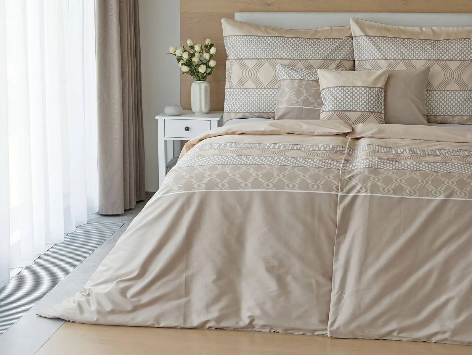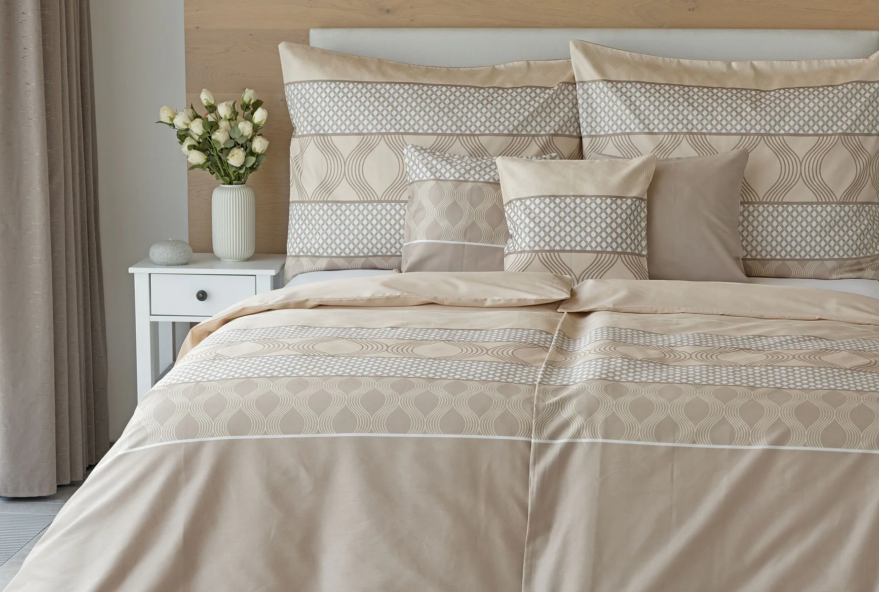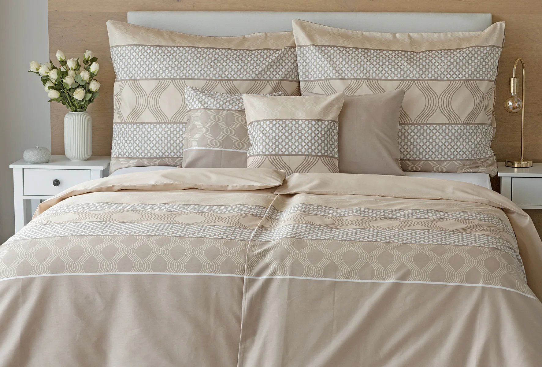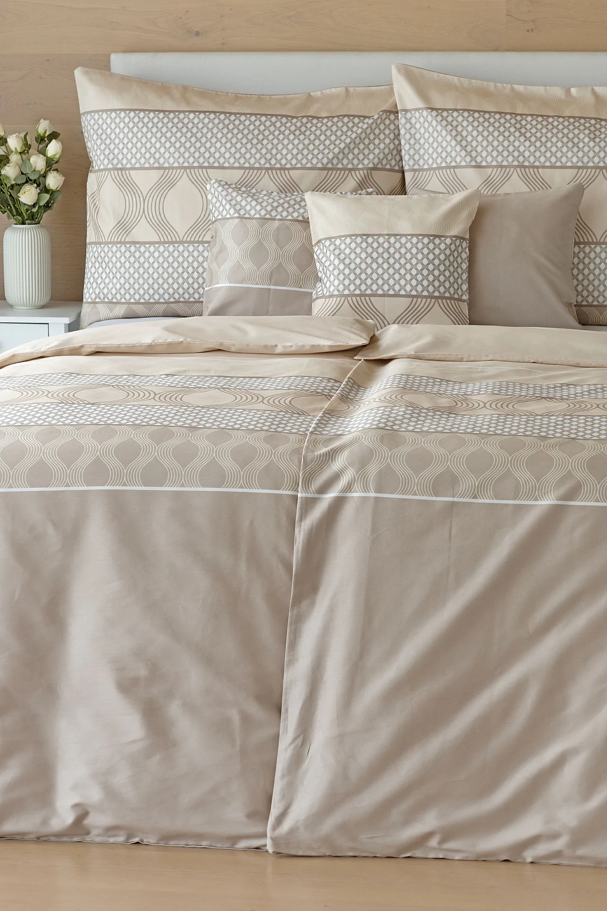 Vdechněte své ložnici kouzlo a příjemnou atmosféru s elegantním povlečením Rionero. Nápaditý geometrický vzor v oblíbené paletě krémových a béžových tónů vyniká v jednoduchosti a skvěle doplní moderní ložnici i rustikálně zařízený interiér.