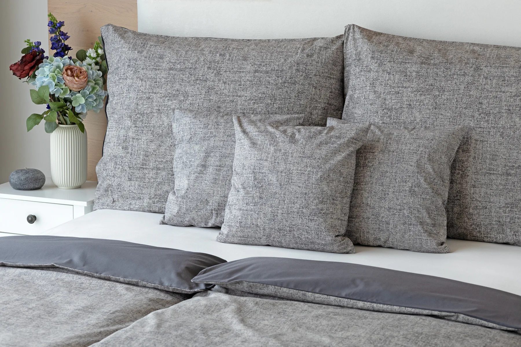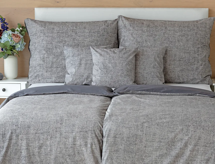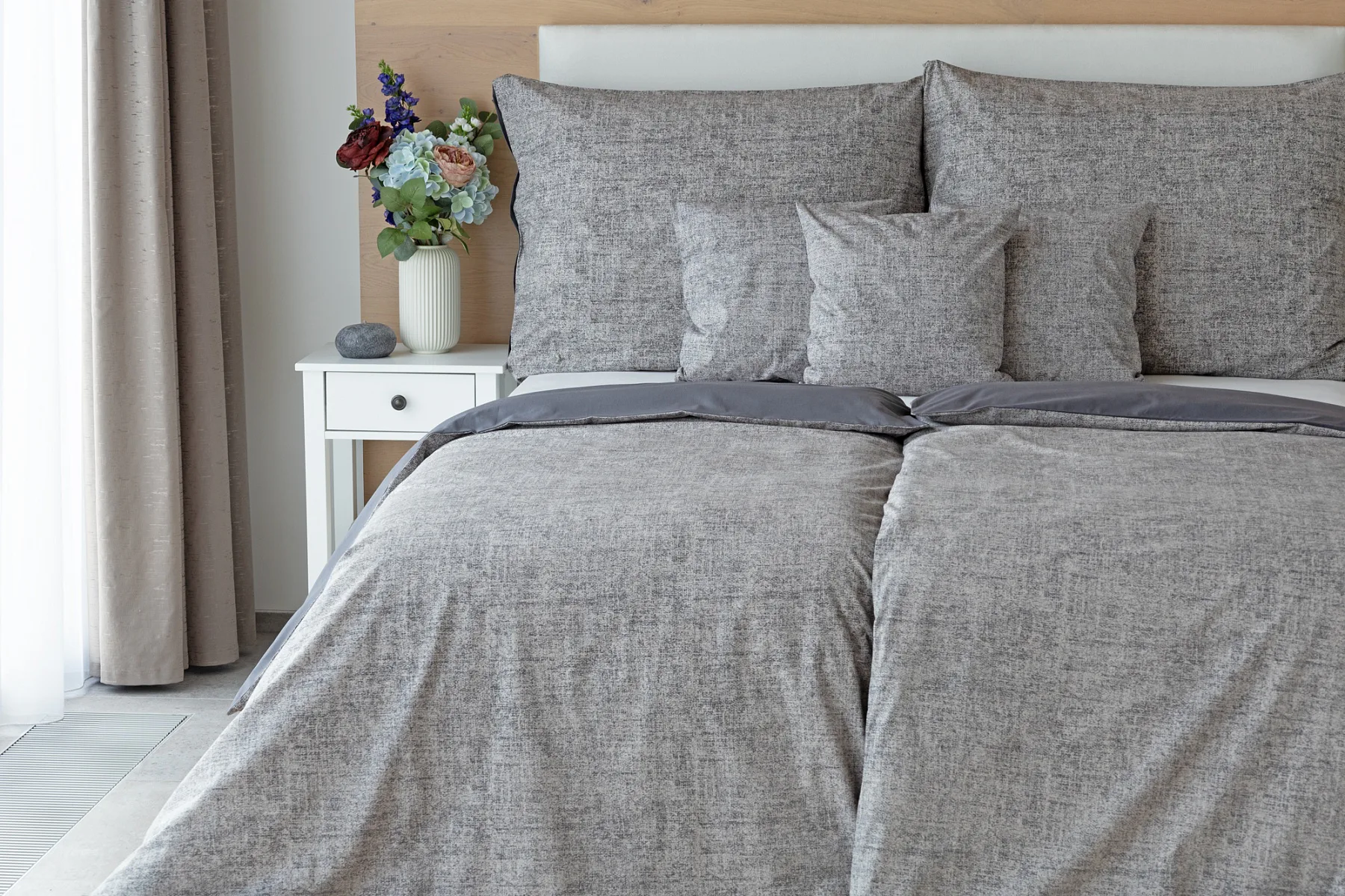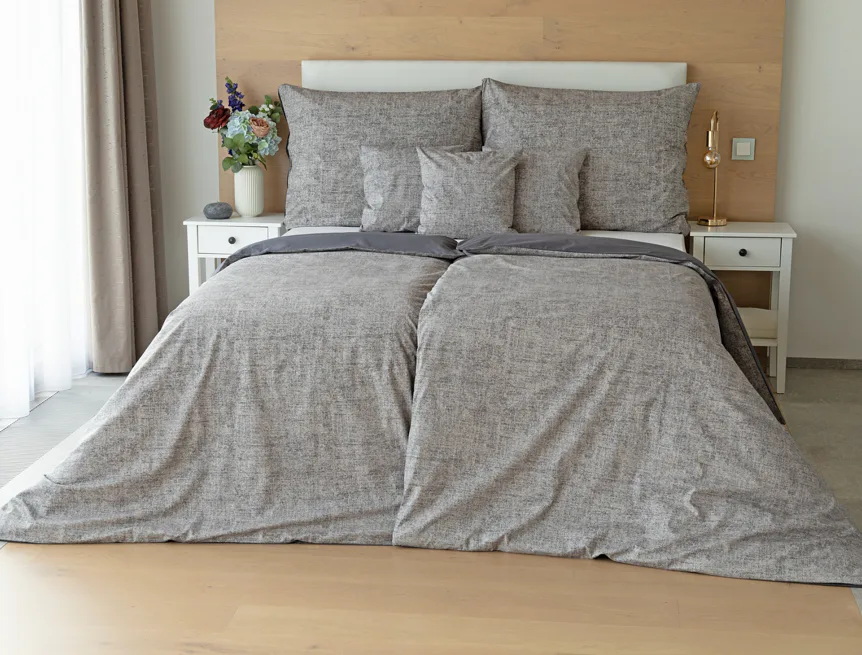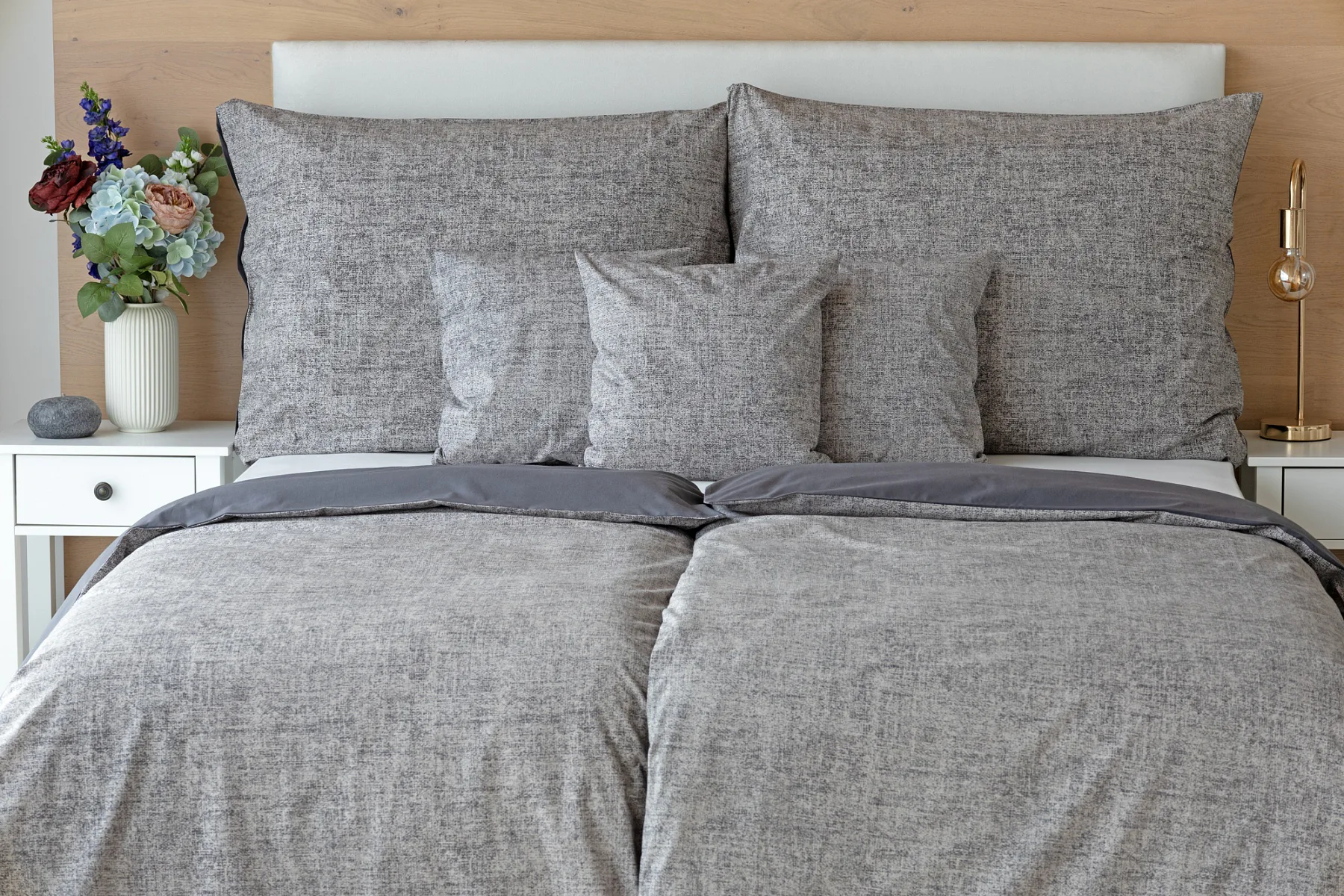 Elegantní krása se často skrývá v jednoduchosti, bavlněné ložní povlečení Ritta vás o tom přesvědčí. Vrchní stranu povlečení tvoří šedý vzor s nepravidelnou tečkovanou strukturou. V kombinaci se spodní stranou povlečení, která je jednobarevná v kovově šedém tónu, utváří harmonický celek, se kterým můžete při stlaní hravě experimentovat. Vzhled vaší ložnice můžete dotáhnout k dokonalosti s prošívaným přehozem ve stejném dezénu!