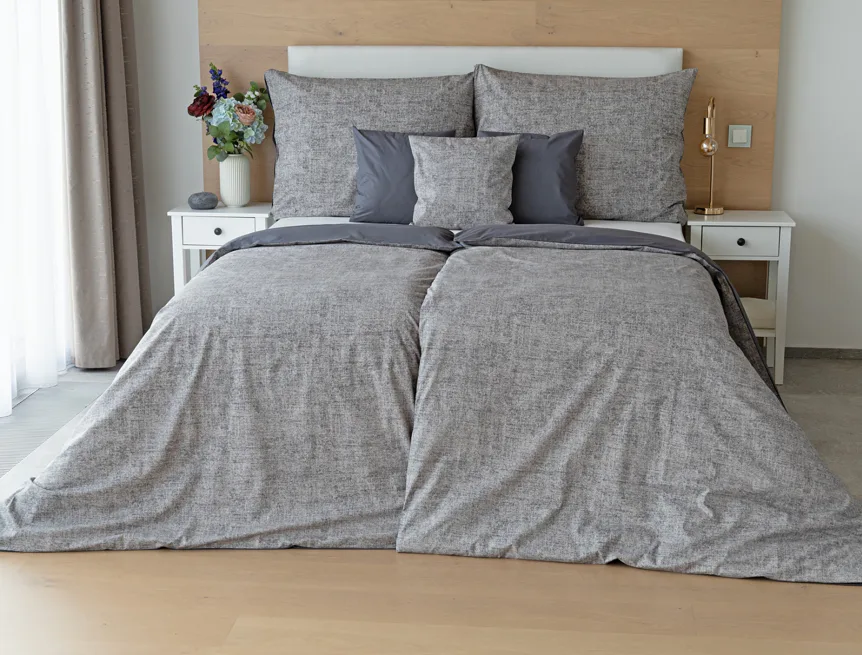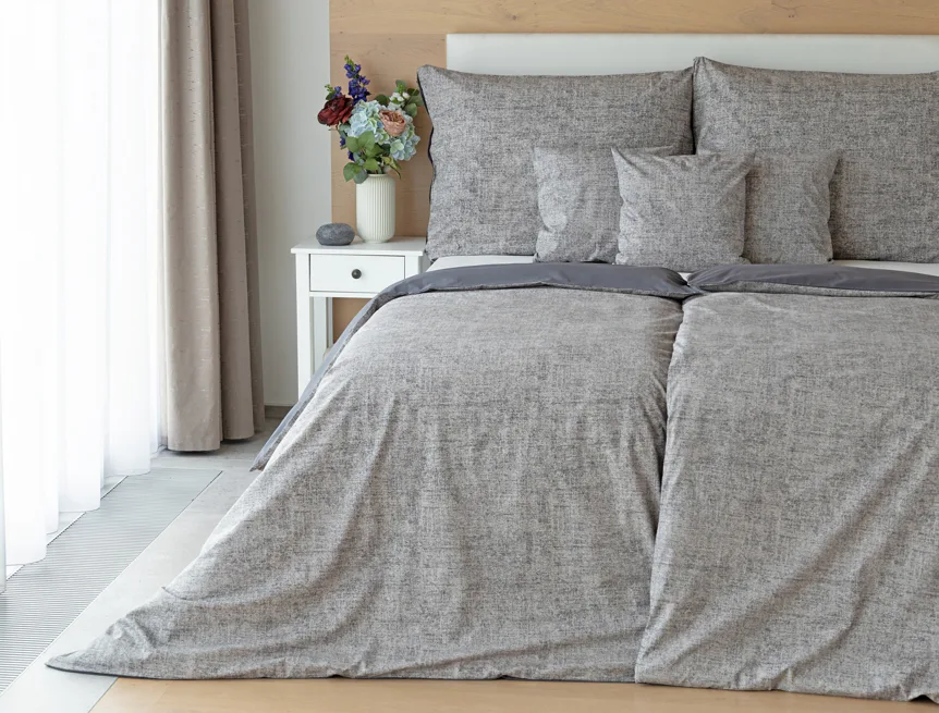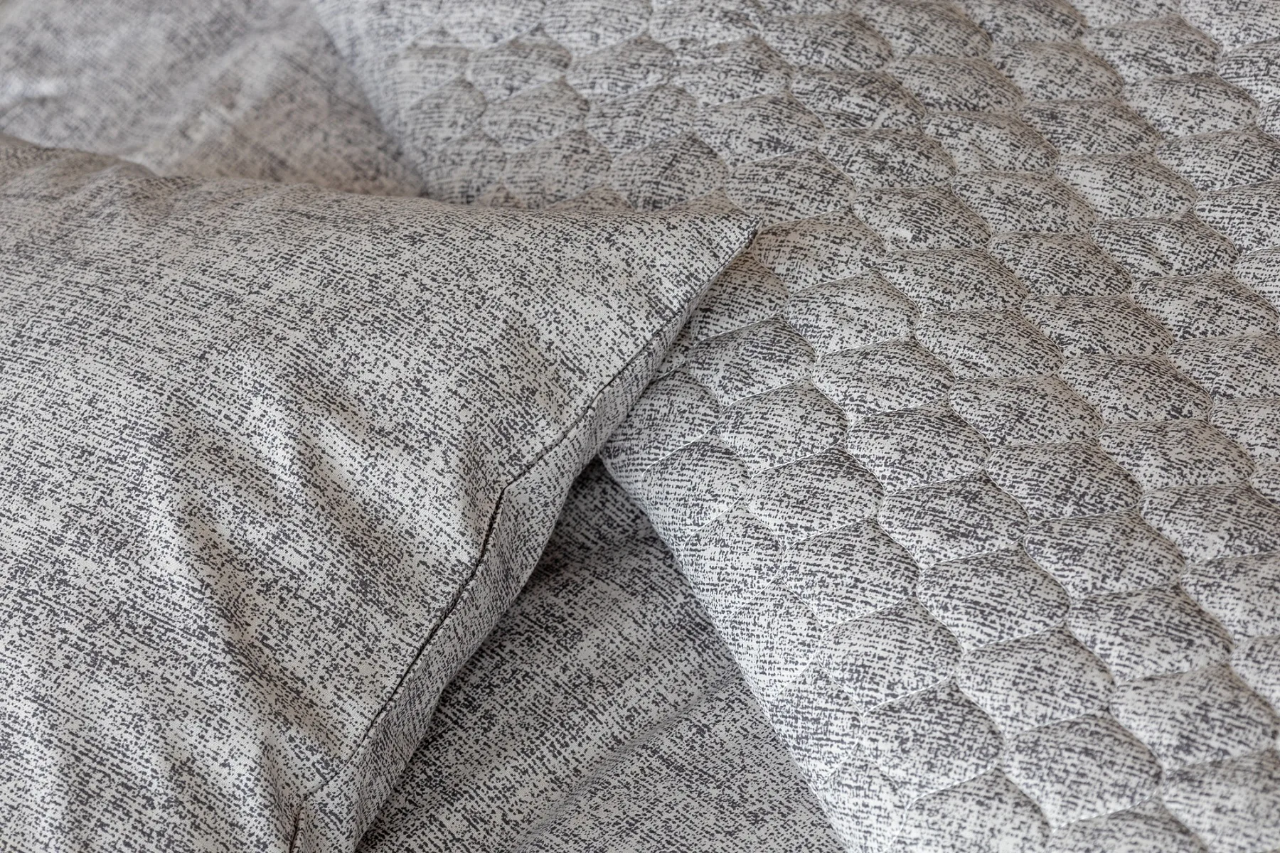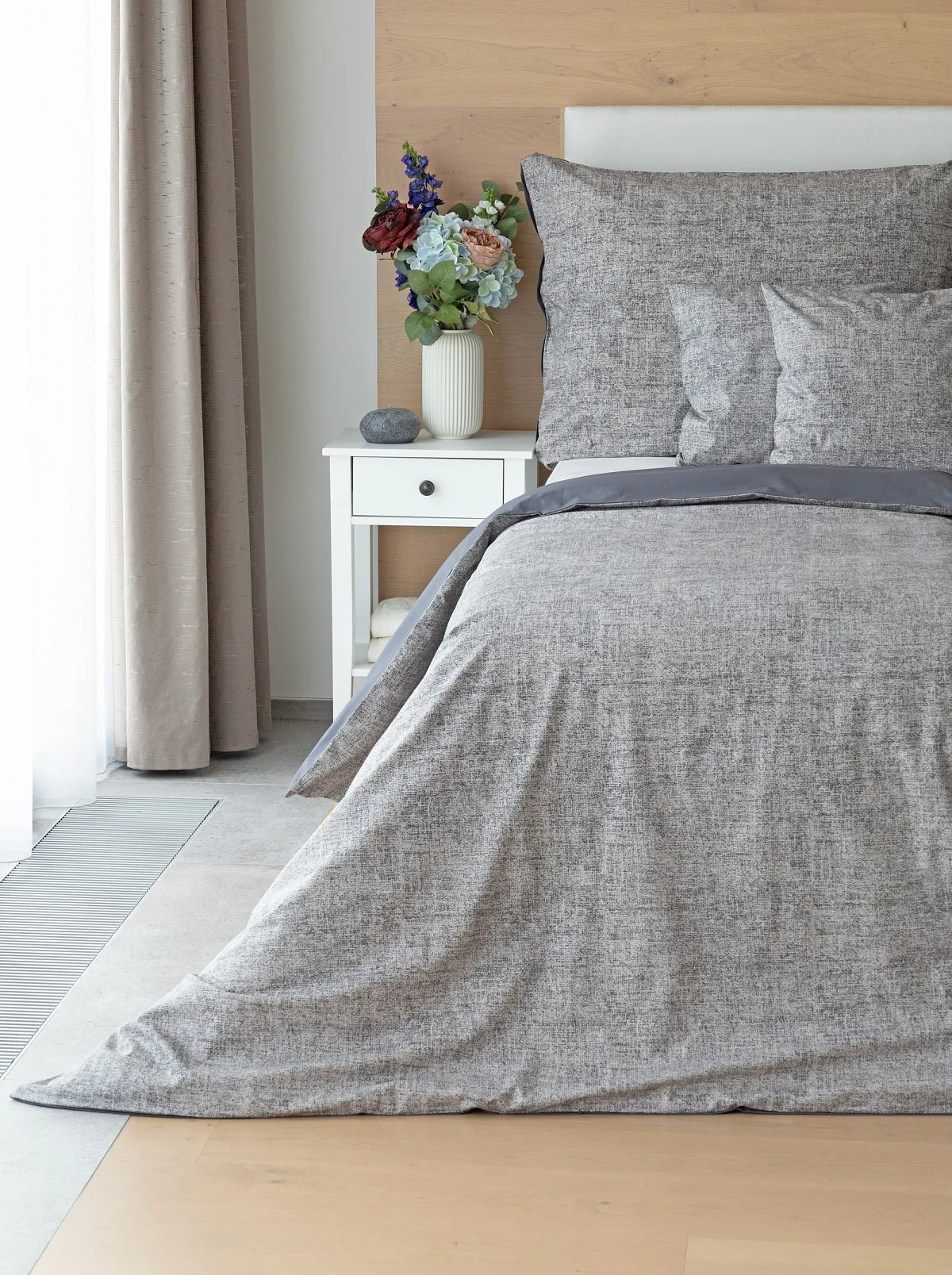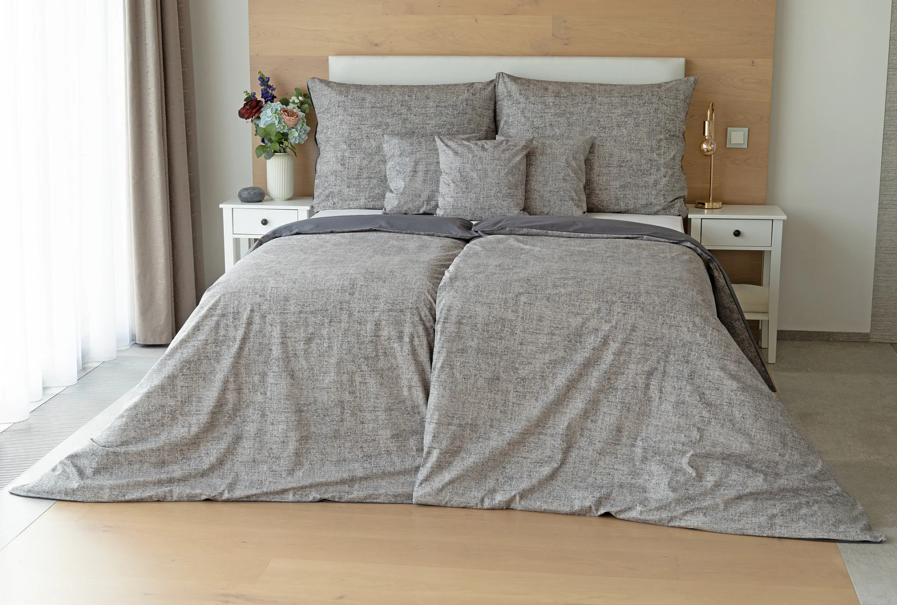 Elegantní krása se často skrývá v jednoduchosti, bavlněné ložní povlečení Ritta vás o tom přesvědčí. Vrchní stranu povlečení tvoří šedý vzor s nepravidelnou tečkovanou strukturou. V kombinaci se spodní stranou povlečení, která je jednobarevná v kovově šedém tónu, utváří harmonický celek, se kterým můžete při stlaní hravě experimentovat. Vzhled vaší ložnice můžete dotáhnout k dokonalosti s prošívaným přehozem ve stejném dezénu!