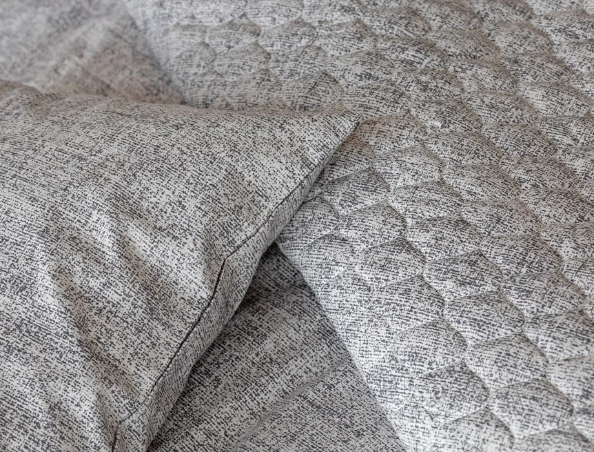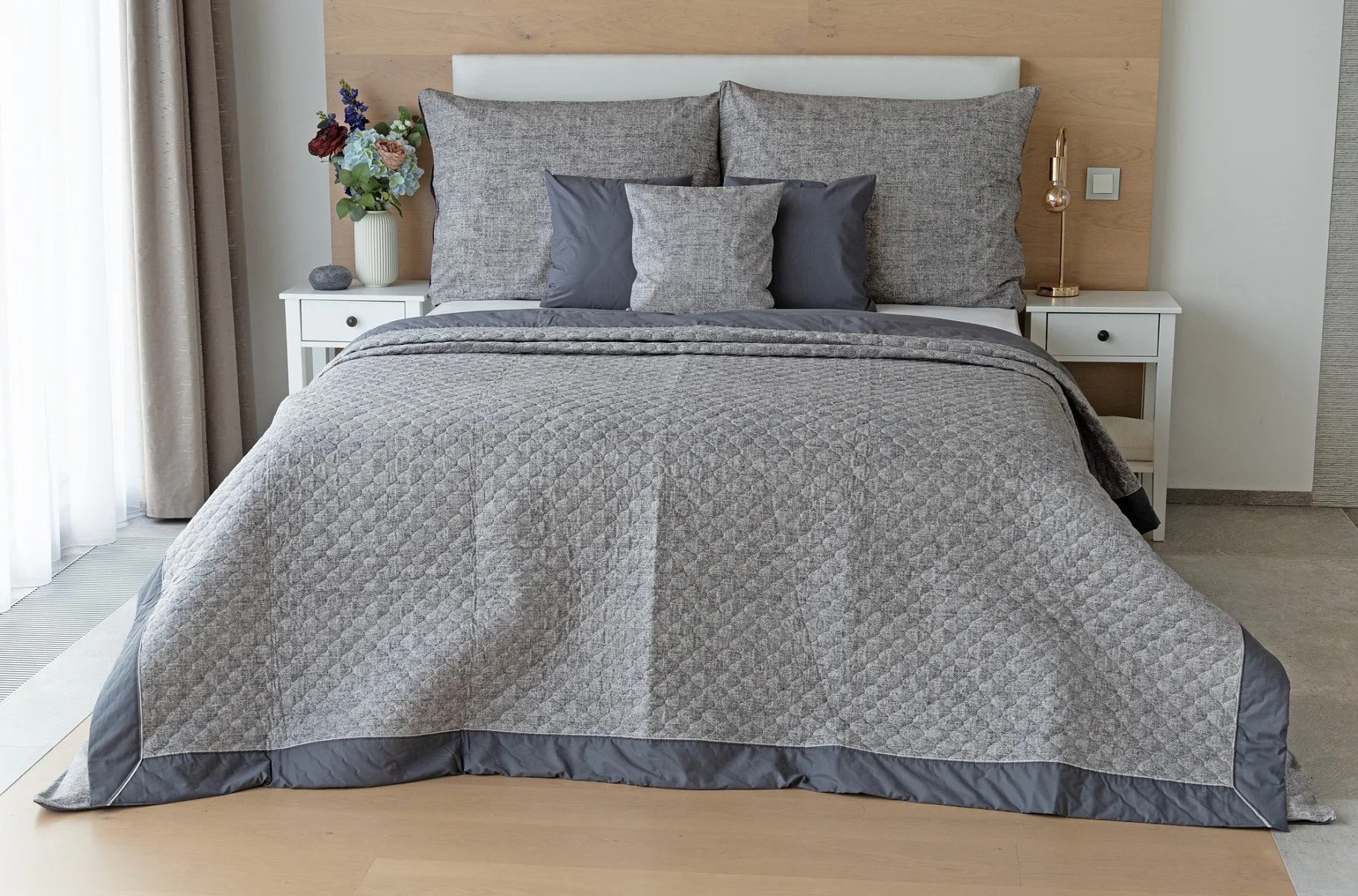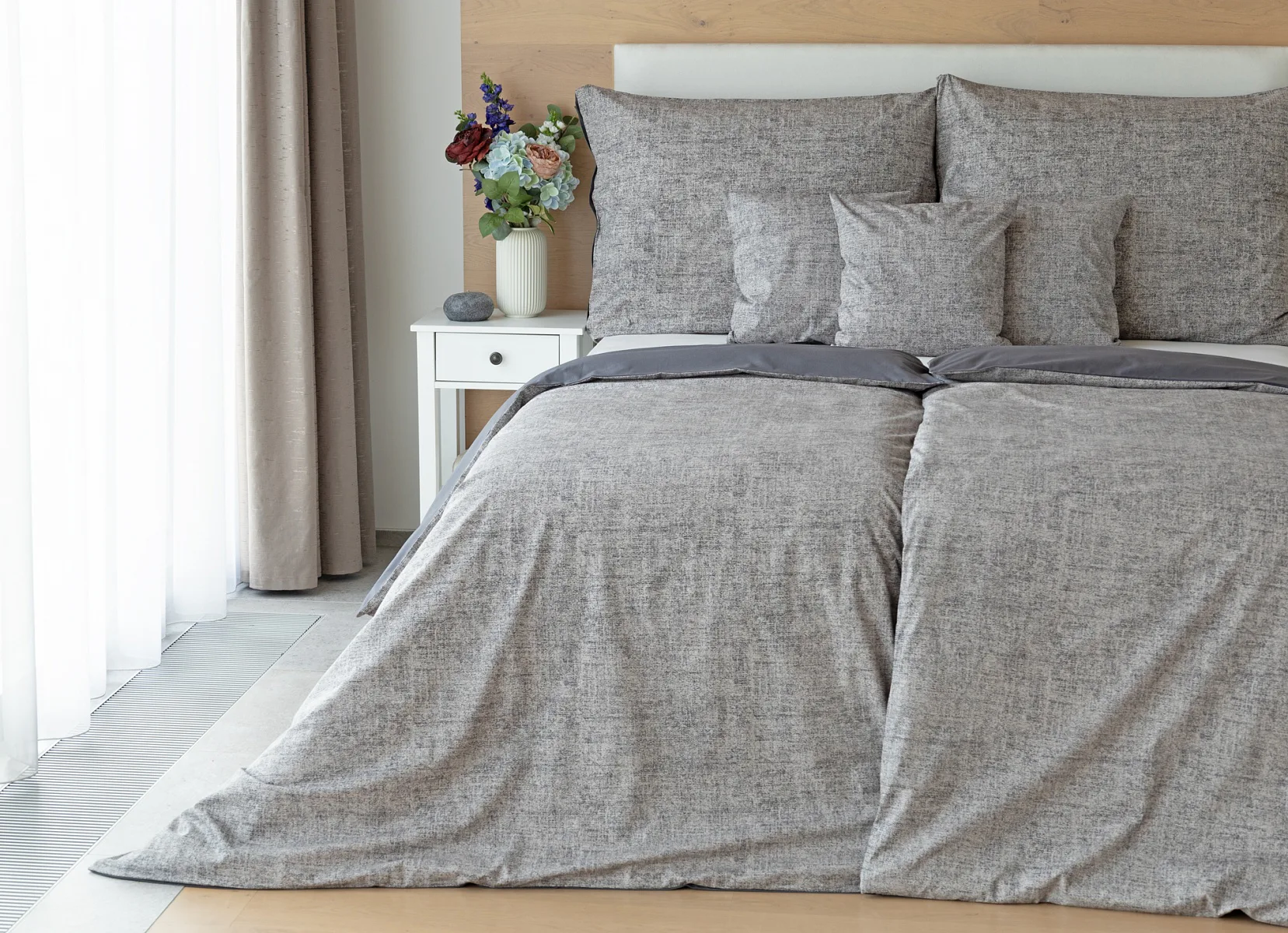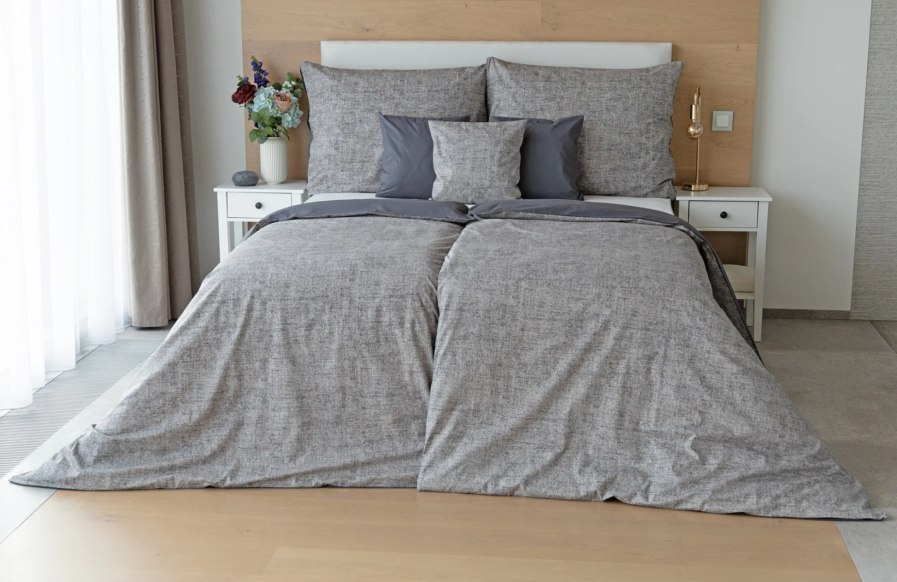 Elegantní krása se často skrývá v jednoduchosti, bavlněné ložní povlečení Ritta vás o tom přesvědčí. Vrchní stranu povlečení tvoří šedý vzor s nepravidelnou tečkovanou strukturou. V kombinaci se spodní stranou povlečení, která je jednobarevná v kovově šedém tónu, utváří harmonický celek, se kterým můžete při stlaní hravě experimentovat. Vzhled vaší ložnice můžete dotáhnout k dokonalosti s prošívaným přehozem ve stejném dezénu!