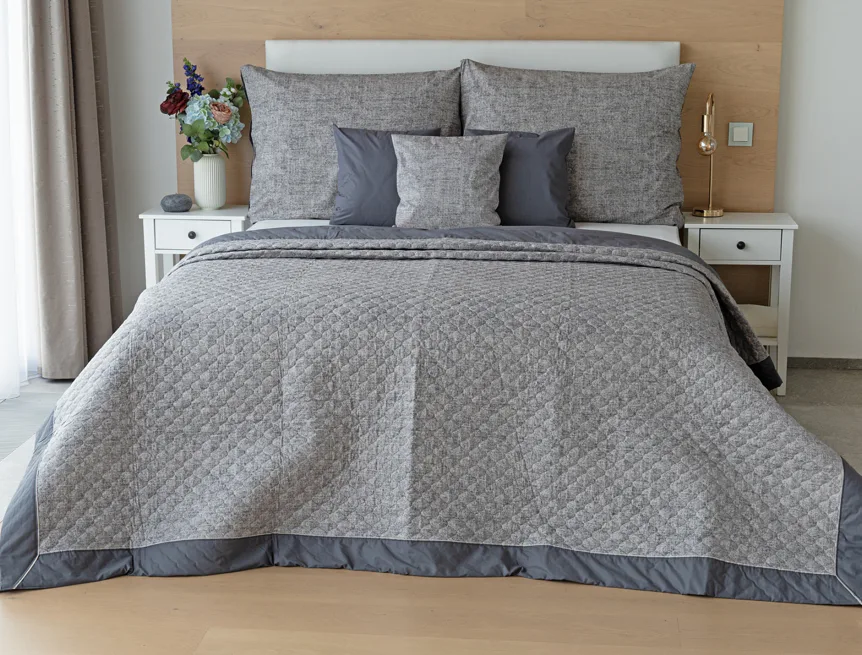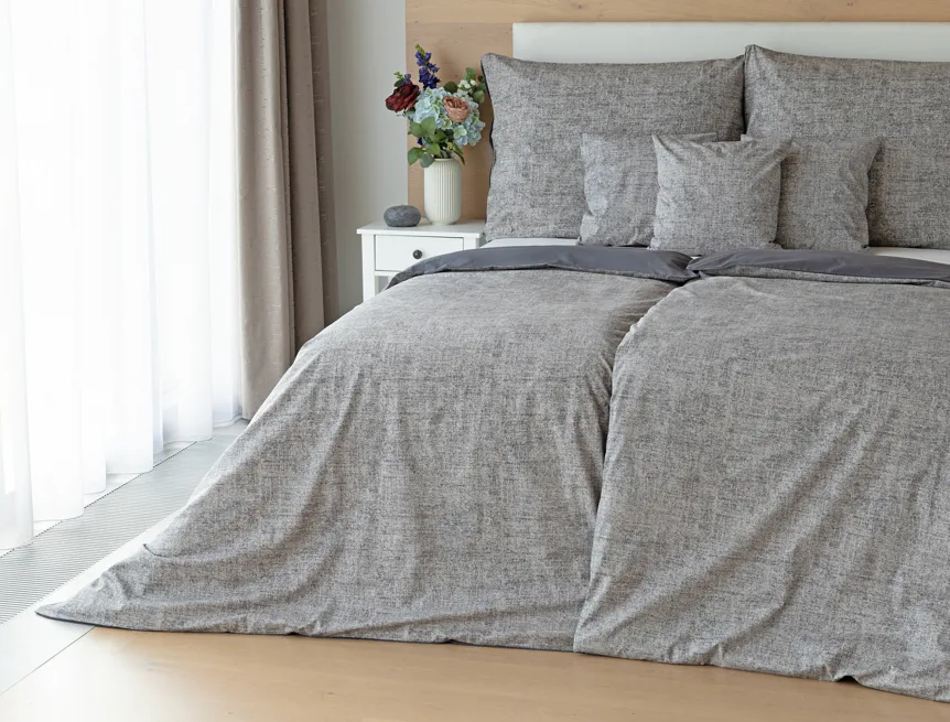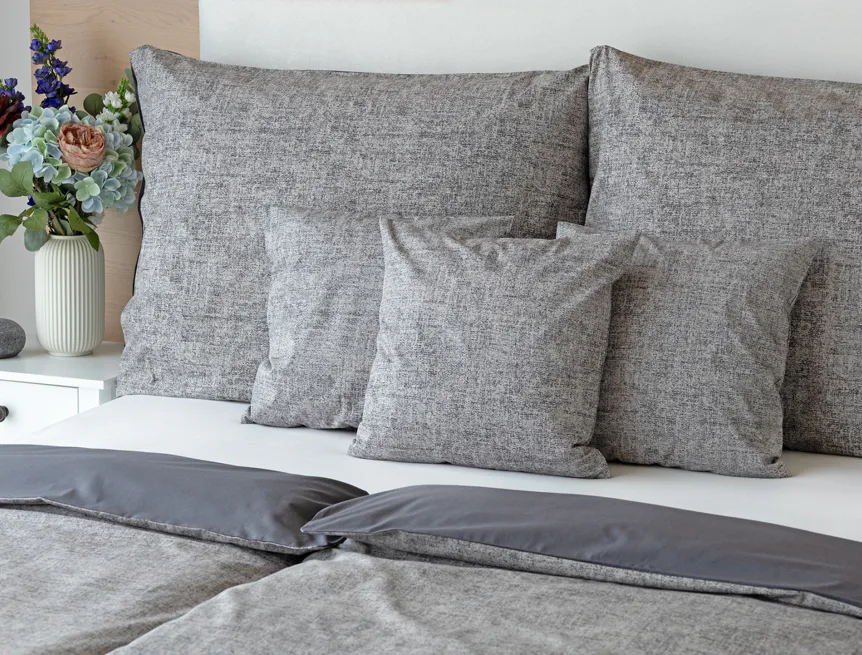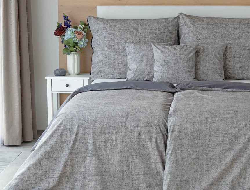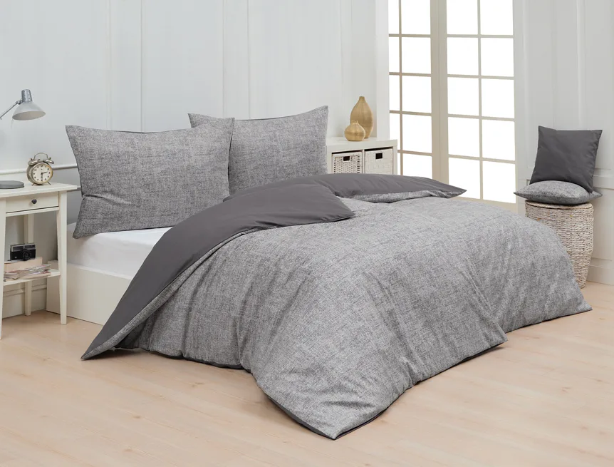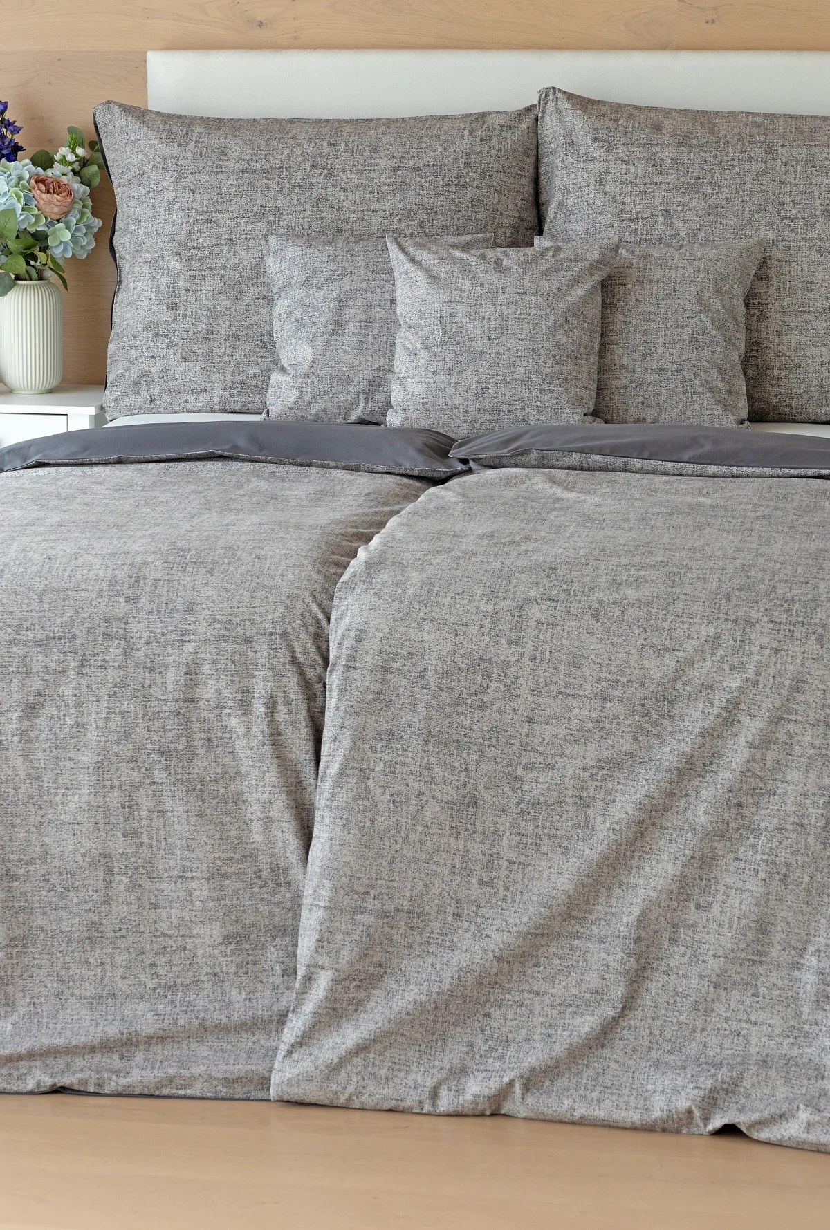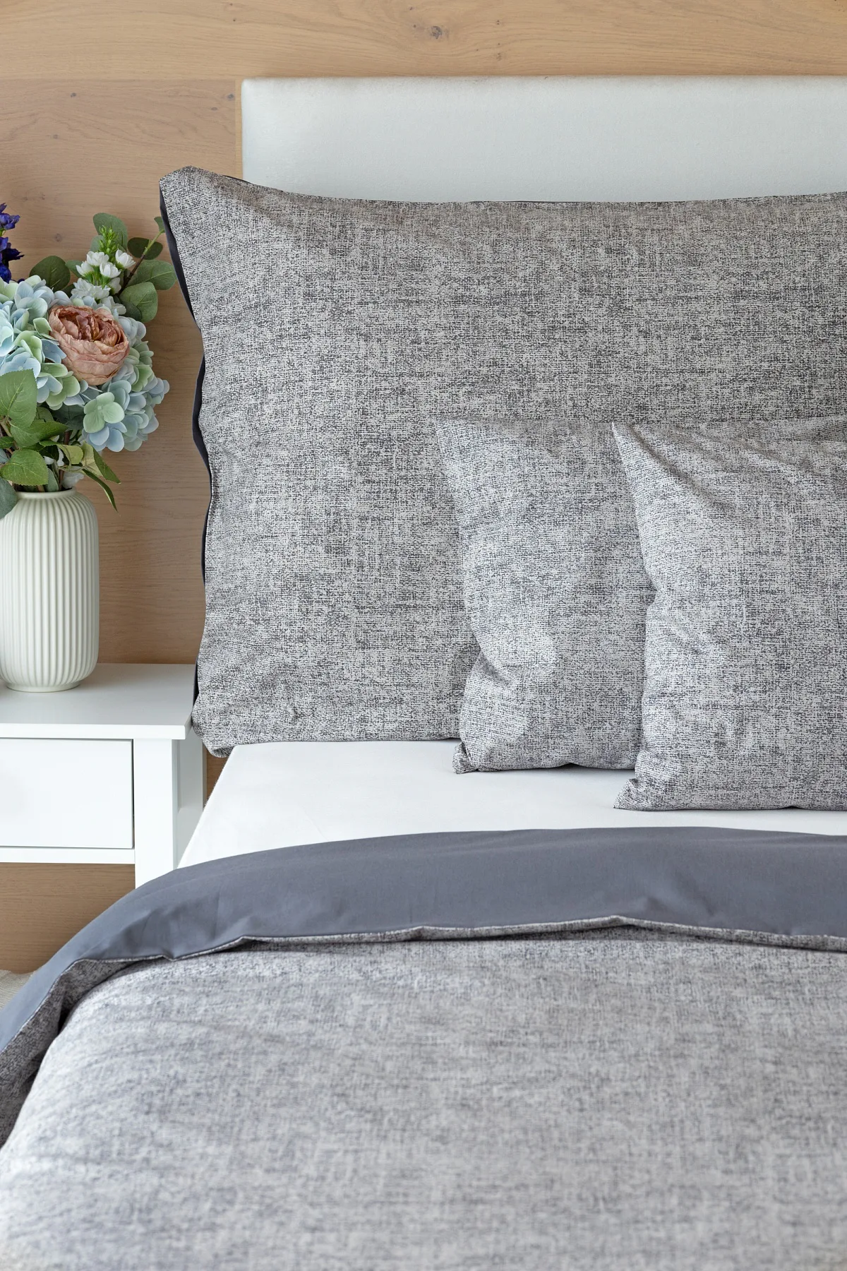 Elegantní krása se často skrývá v jednoduchosti, bavlněné ložní povlečení Ritta vás o tom přesvědčí. Vrchní stranu povlečení tvoří šedý vzor s nepravidelnou tečkovanou strukturou. V kombinaci se spodní stranou povlečení, která je jednobarevná v kovově šedém tónu, utváří harmonický celek, se kterým můžete při stlaní hravě experimentovat. Vzhled vaší ložnice můžete dotáhnout k dokonalosti s prošívaným přehozem ve stejném dezénu!