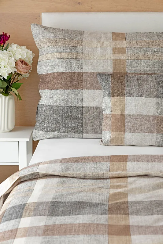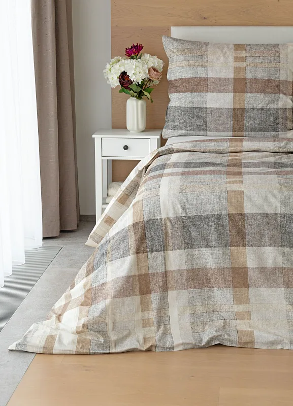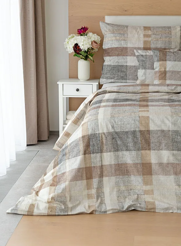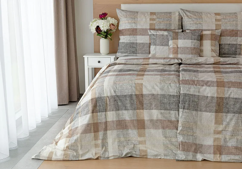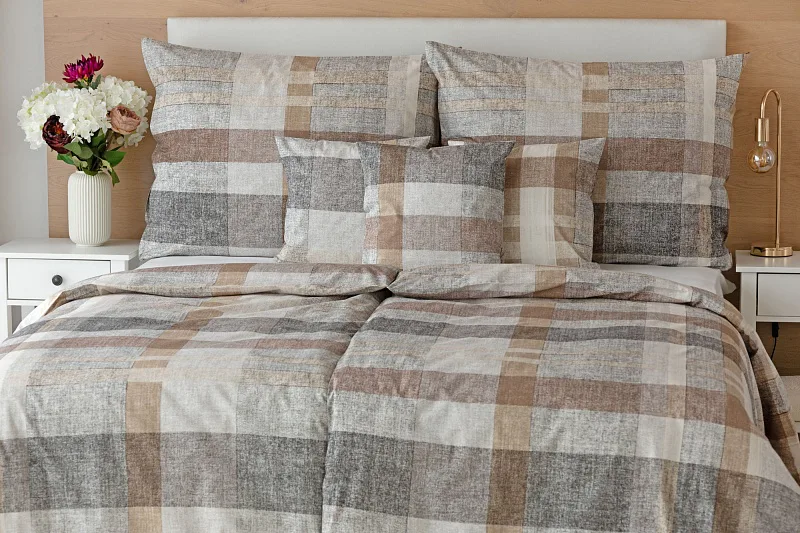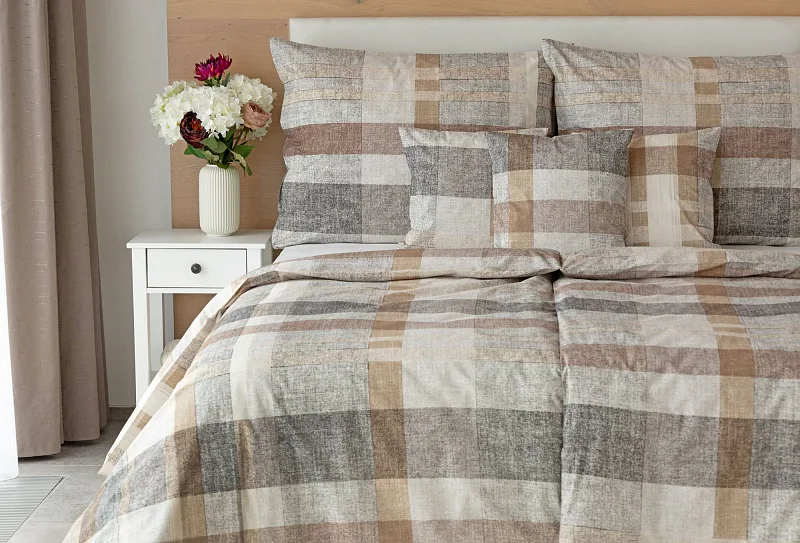 Bavlněné povlečení Rodrigo vás mile překvapí. Jednoduchý motiv, nevýrazné zemité barvy, a přesto tak perfektní výsledek. Ustlat, doplnit polštářkem a ložnice bude vypadat skvěle! Díky kombinaci přírodních odstínů hnědé a šedé sluší povlečení Rodrigo každému interiéru.