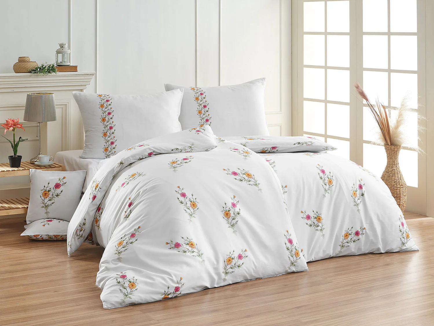 Čistý, vzdušný a velmi elegantní vzor. Skvěle funguje v romantických i minimalistických ložnicích; bílé plochy nechají vyniknout květům a opticky projasní prostor.
