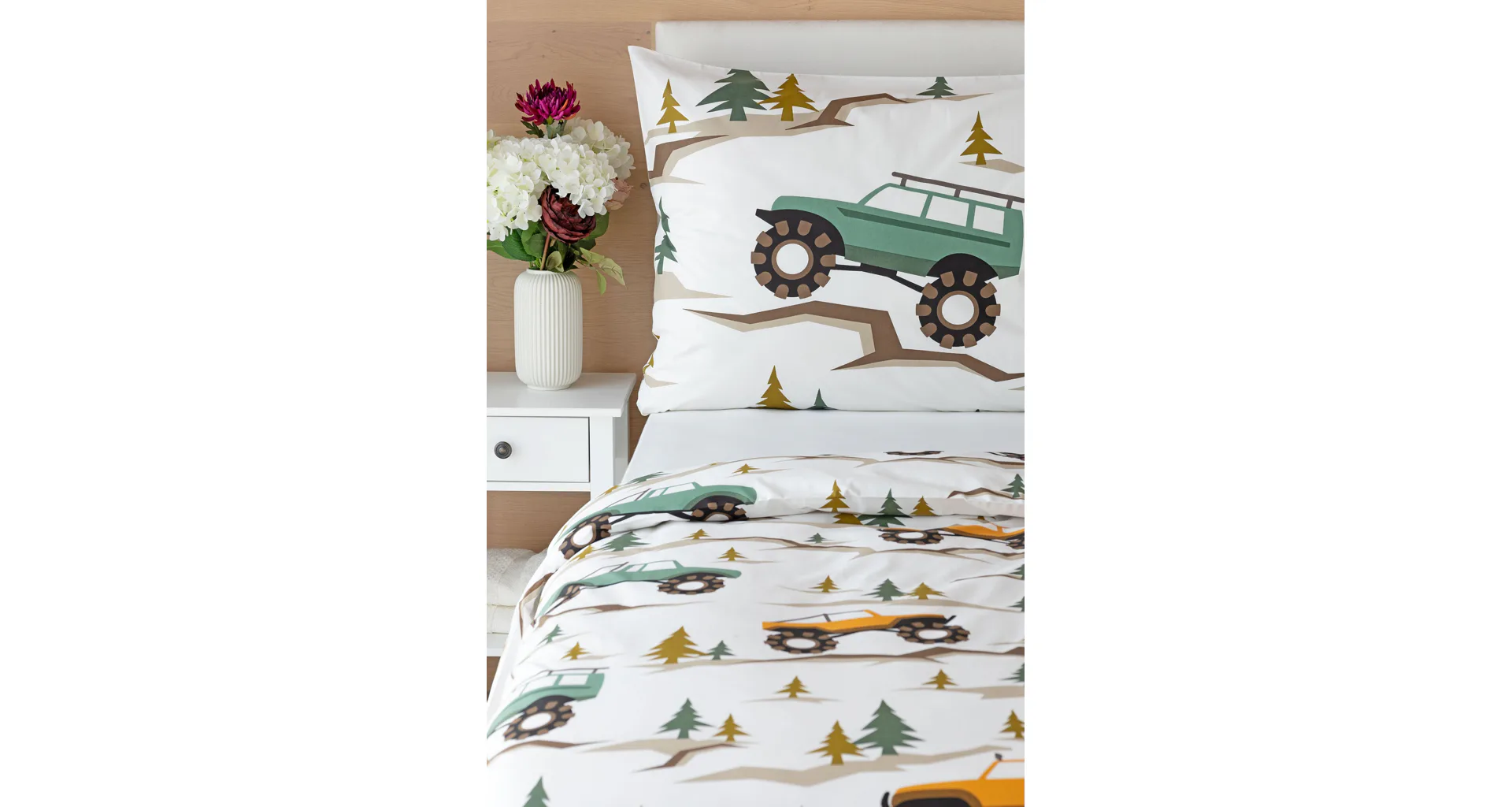 Malí milovníci aut s velkými koly se nadchnou při pohledu na bavlněné ložní povlečení Truck. Hravý dětský motiv kombinuje atraktivní barvy a díky stoprocentní prvotřídní bavlně budou spokojeně usínat děti i rodiče.