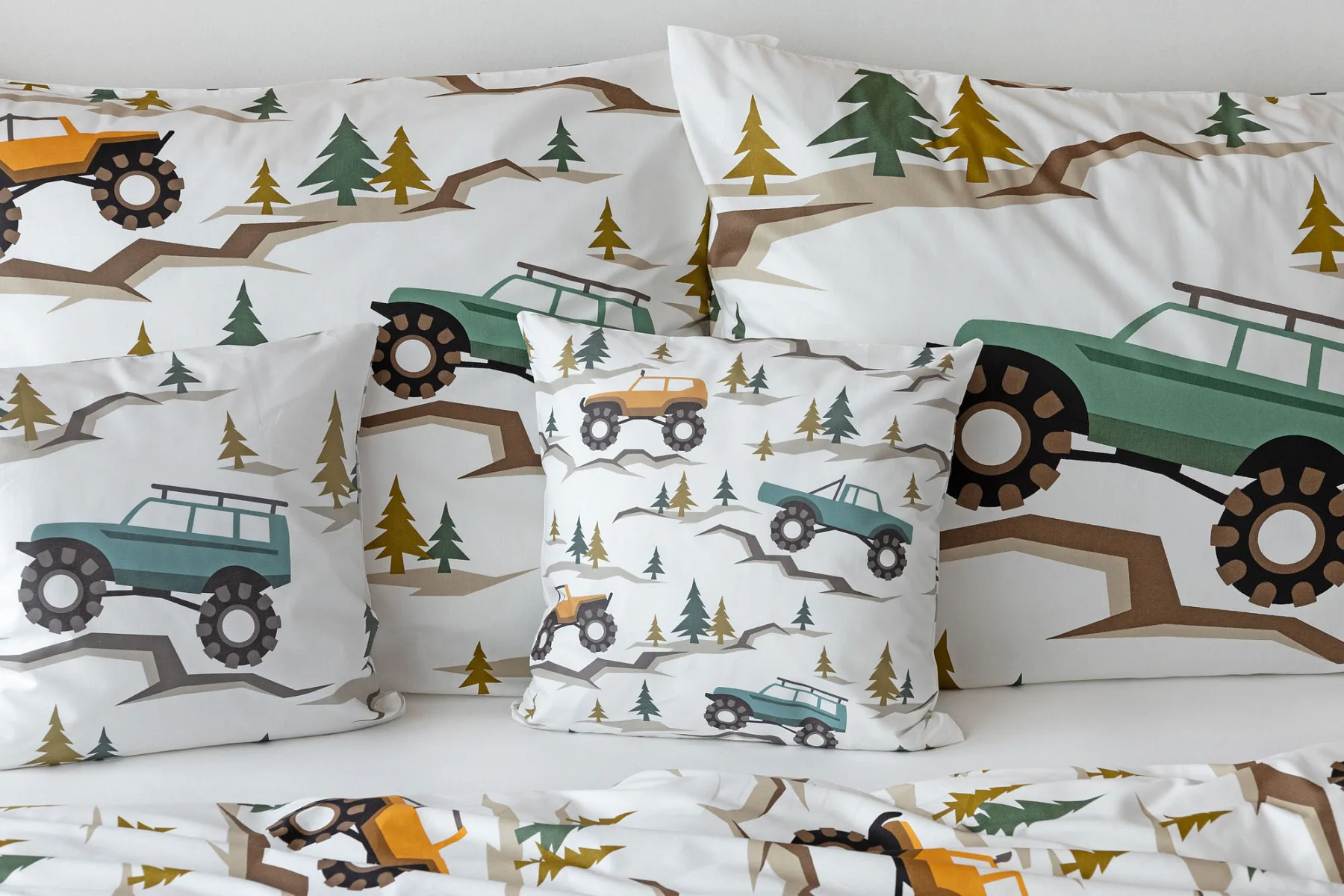 Povlak na přikrývku je z obou stran stejný, povlak na polštář zachycuje na spodní straně více aut. Povlečení je opatřeno komfortním zipovým uzávěrem.