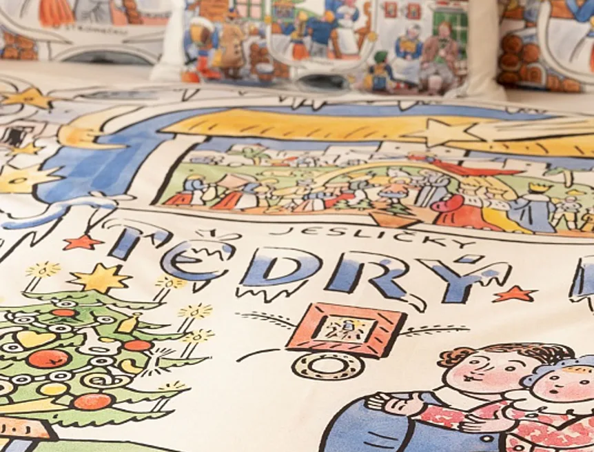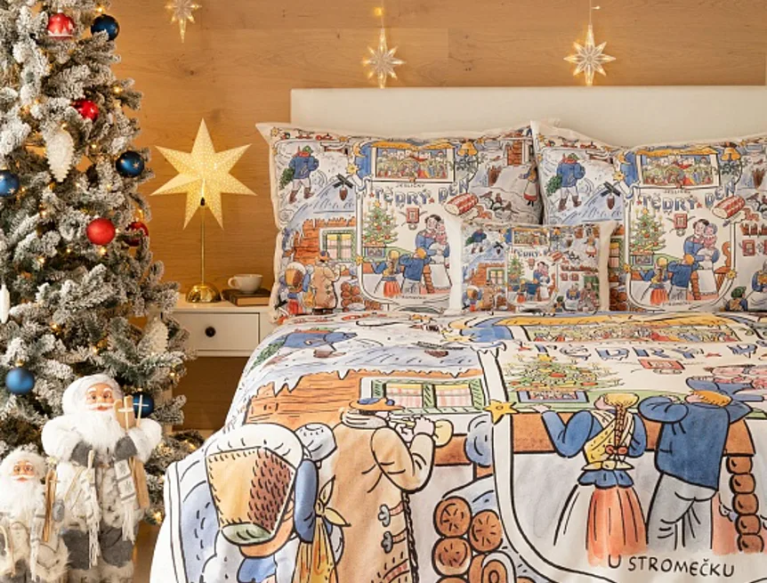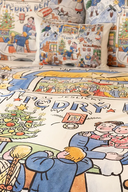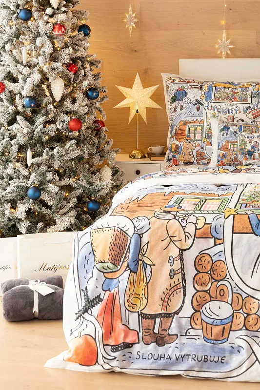 Povlečení se zimními motivy kreseb Josefa Lady, které do českých domovů přinášejí tu pravou vánoční poetiku, se stane unikátním praktickým solitérem i originální dárkem. Vykouzlete si jedinečnou atmosféru také u sebe doma díky bavlněnému povlečení Vánoce.