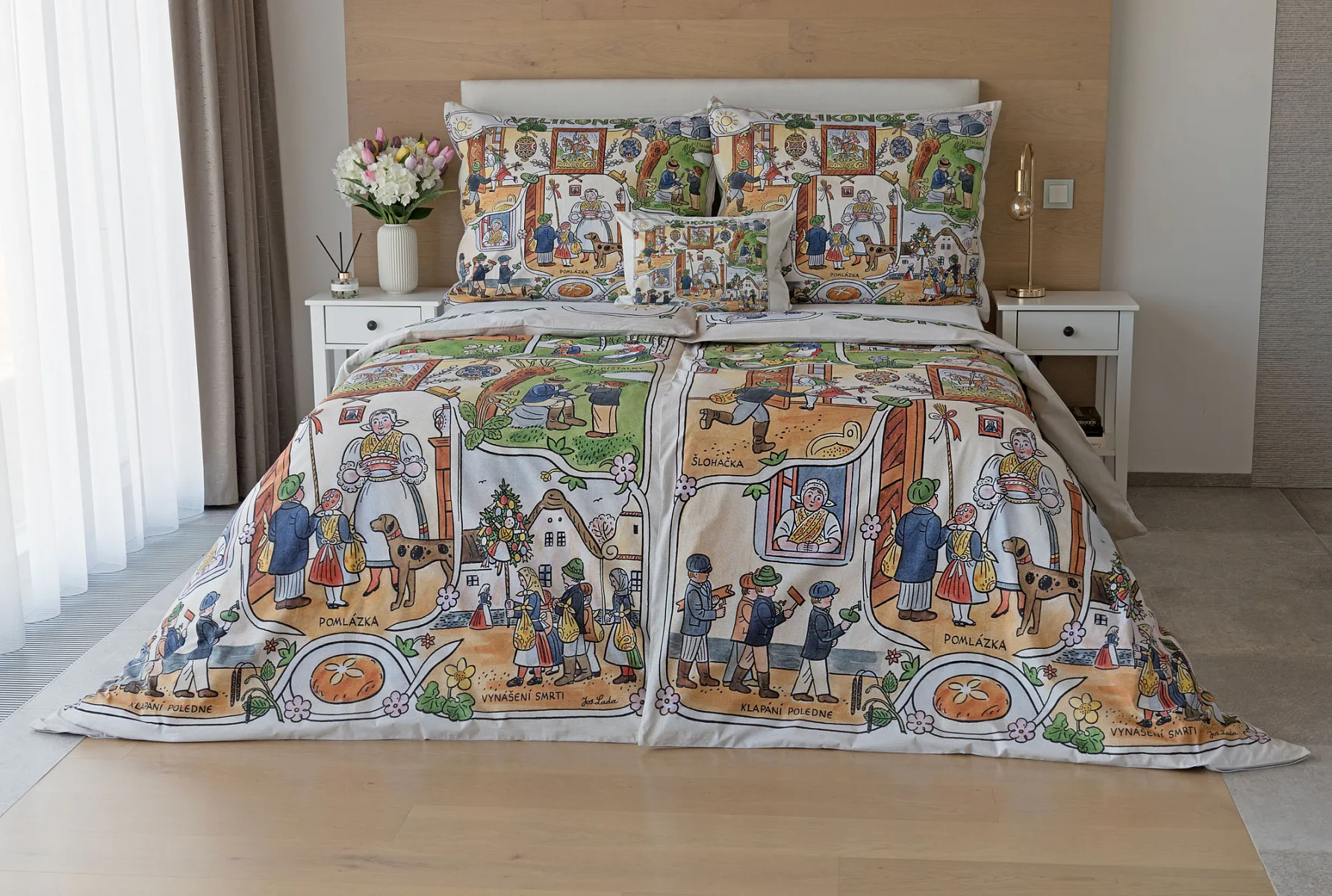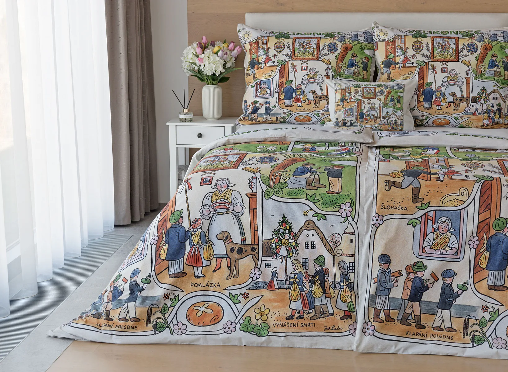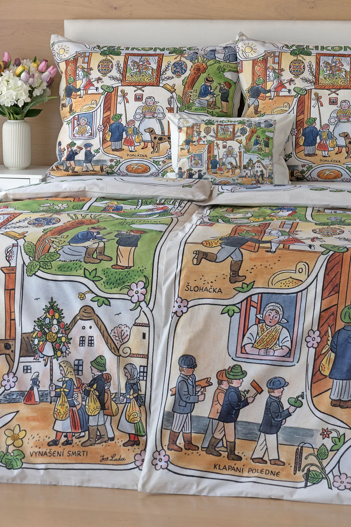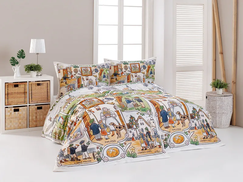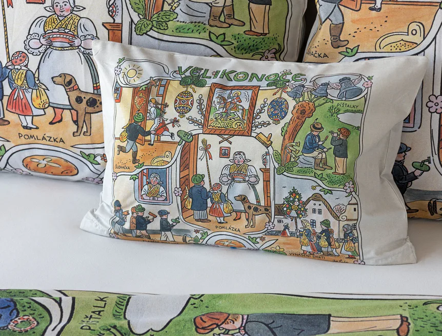 Velikonoční tradice připomínají oblíbené kresby Josefa Lady, které v mnohých z nás probouzejí vzpomínky na bezstarostné dětství. Přivítejte svátky jara stylově a vykouzlete si sváteční atmosféru i u sebe doma díky bavlněnému povlečení Velikonoce. Díky atraktivní paletě přírodních tónů a nestárnoucím tradičním motivům bude povlečení ozdobou každé ložnice.