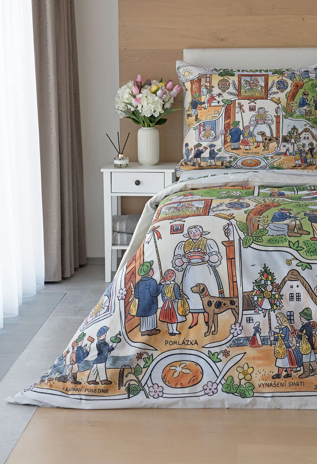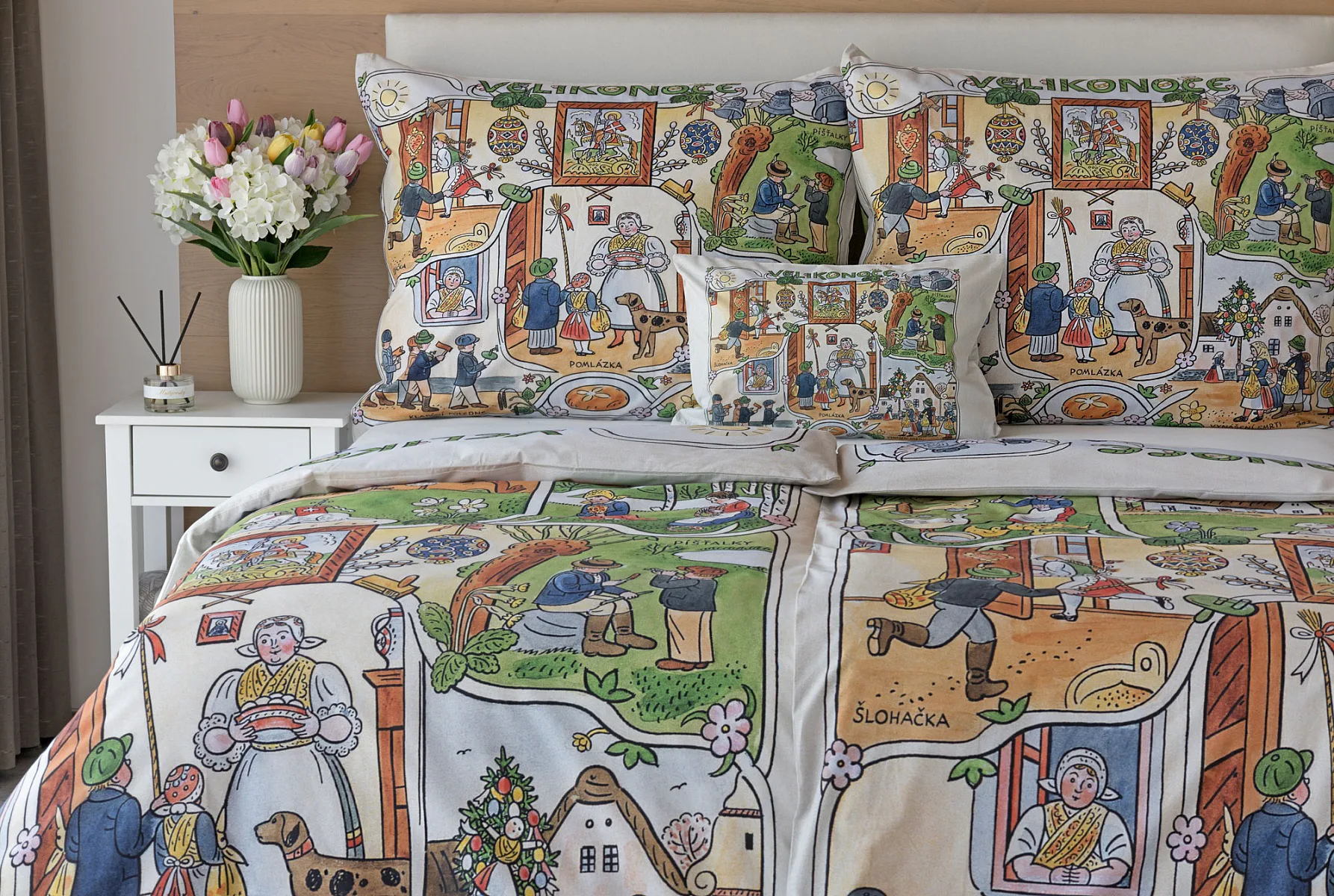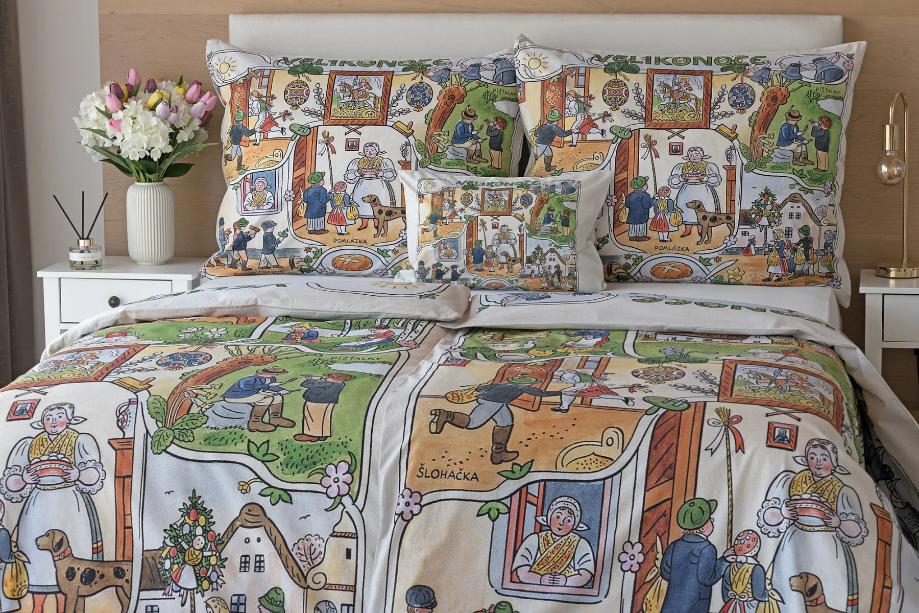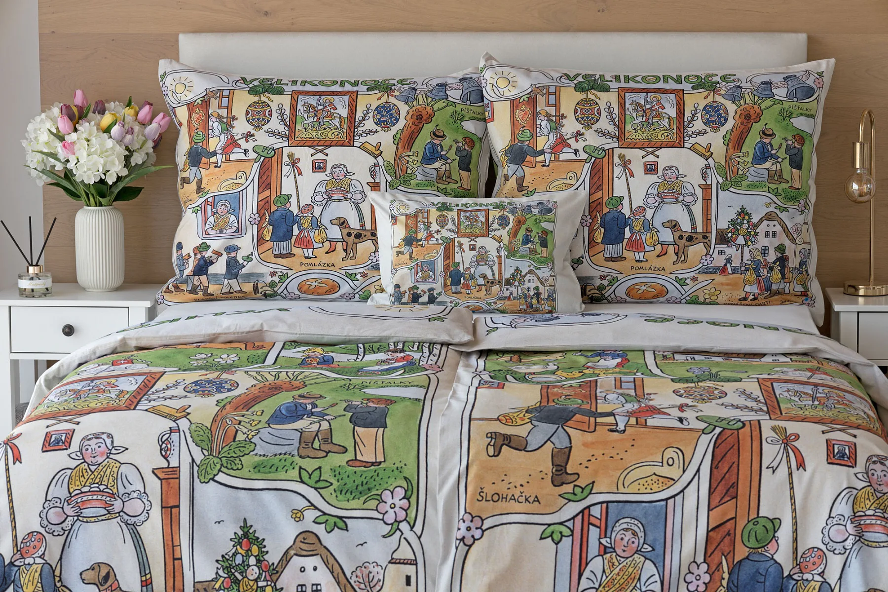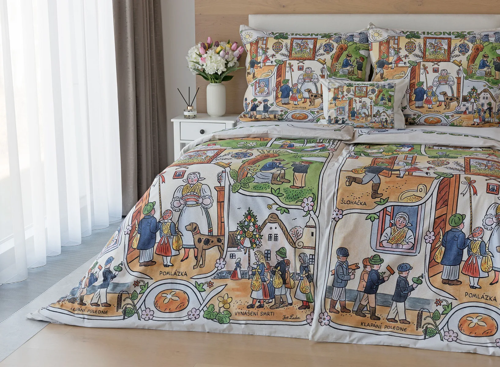 Velikonoční tradice připomínají oblíbené kresby Josefa Lady, které v mnohých z nás probouzejí vzpomínky na bezstarostné dětství. Přivítejte svátky jara stylově a vykouzlete si sváteční atmosféru i u sebe doma díky bavlněnému povlečení Velikonoce. Díky atraktivní paletě přírodních tónů a nestárnoucím tradičním motivům bude povlečení ozdobou každé ložnice.