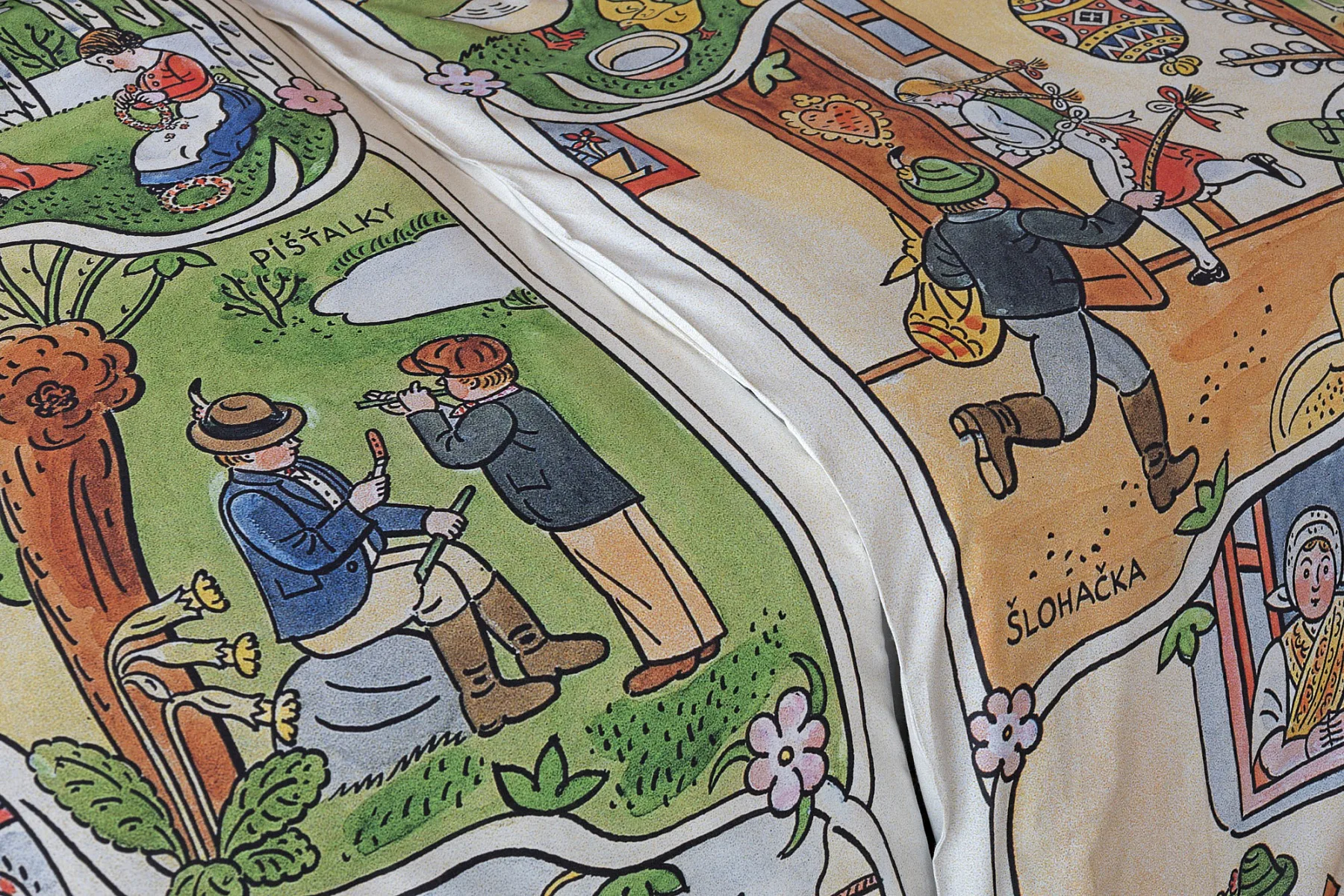 Povlečení z kolekce Josef Lada vyrábíme s ohledem na dostupná tisková data pouze v klasickém rozměru přikrývek 140x200 cm, případně v prodloužené délce 140x220 cm.