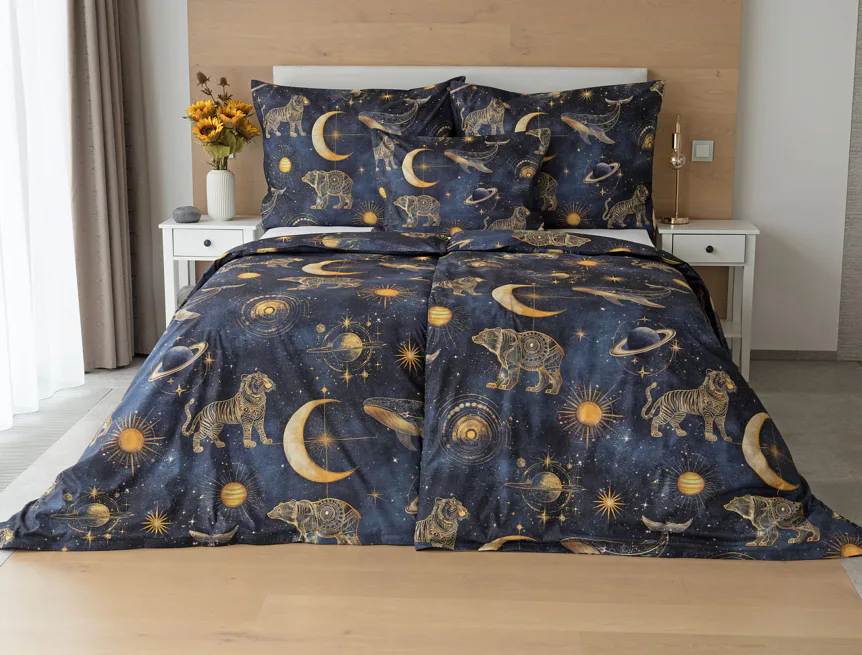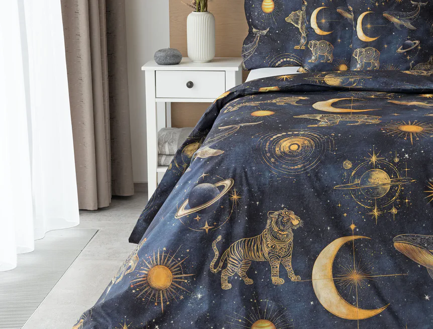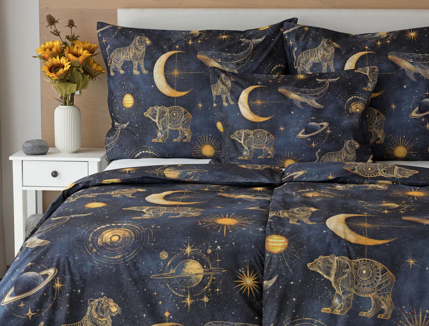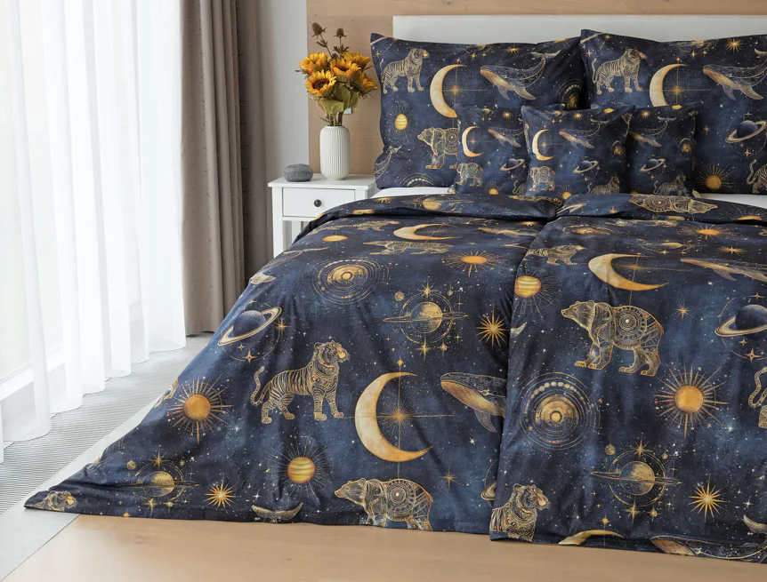 Objevte kouzlo nekonečného vesmíru přímo z pohodlí vlastní ložnice. Naše bavlněné povlečení Veloria s originálním galaktickým designem vytváří atmosféru klidu, dobrodružství a snění, která potěší děti, teenagery i dospělé milovníky tajemného kosmu. Díky preciznímu digitálnímu tisku si barvy uchovávají svou intenzitu i po opakovaném praní.