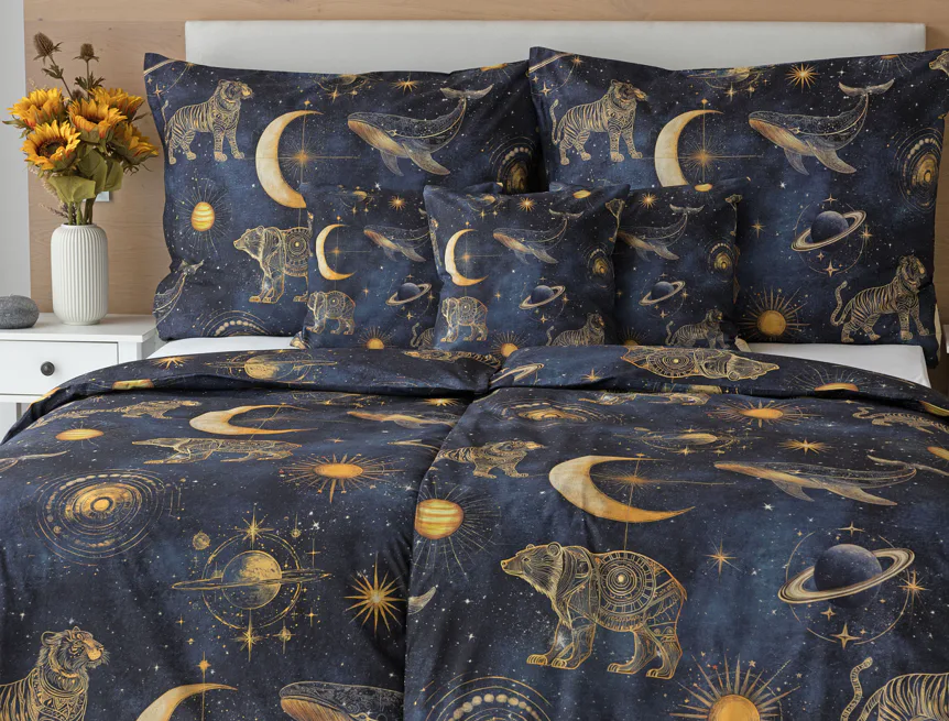 Objevte kouzlo nekonečného vesmíru přímo z pohodlí vlastní ložnice. Naše bavlněné povlečení Veloria s originálním galaktickým designem vytváří atmosféru klidu, dobrodružství a snění, která potěší...