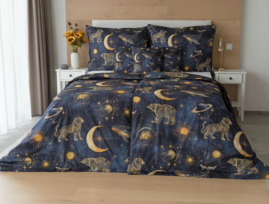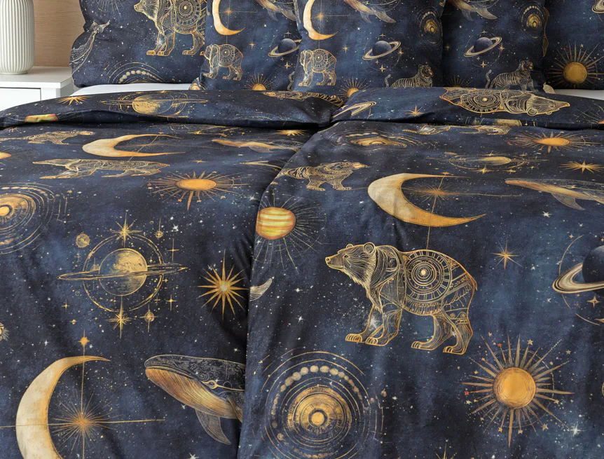 Tajemná galaxie je fascinující pro všechny generace. Nechte své děti objevovat kouzlo nekonečného vesmíru přímo z útulného zázemí dětského pokoje. Naše bavlněné povlečení Veloria s originálním galaktickým designem vytváří atmosféru klidu, dobrodružství a snění, která potěší děti i teenagery. Povlečení je vyrobené z prvotřídní bavlny, která zajistí klidný spánek dětí i rodičů.