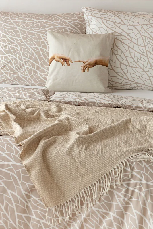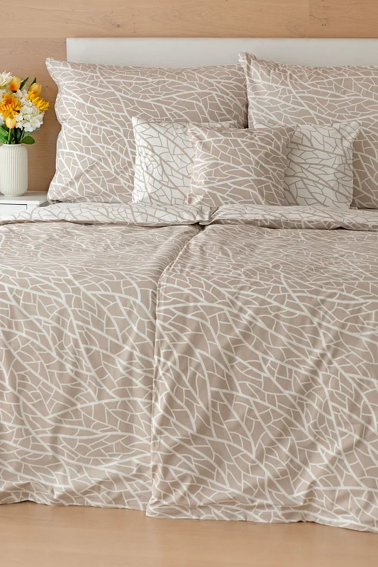 Ložní povlečení Venatio je jako stvořené pro milovníky střídmé elegance se smyslem pro detail. V nápaditém vzoru se snoubí hřejivý odstín bílé kávy protnutý krémově bílou. Díky oblíbenému oboustrannému provedení můžete při stlaní hravě improvizovat.