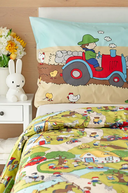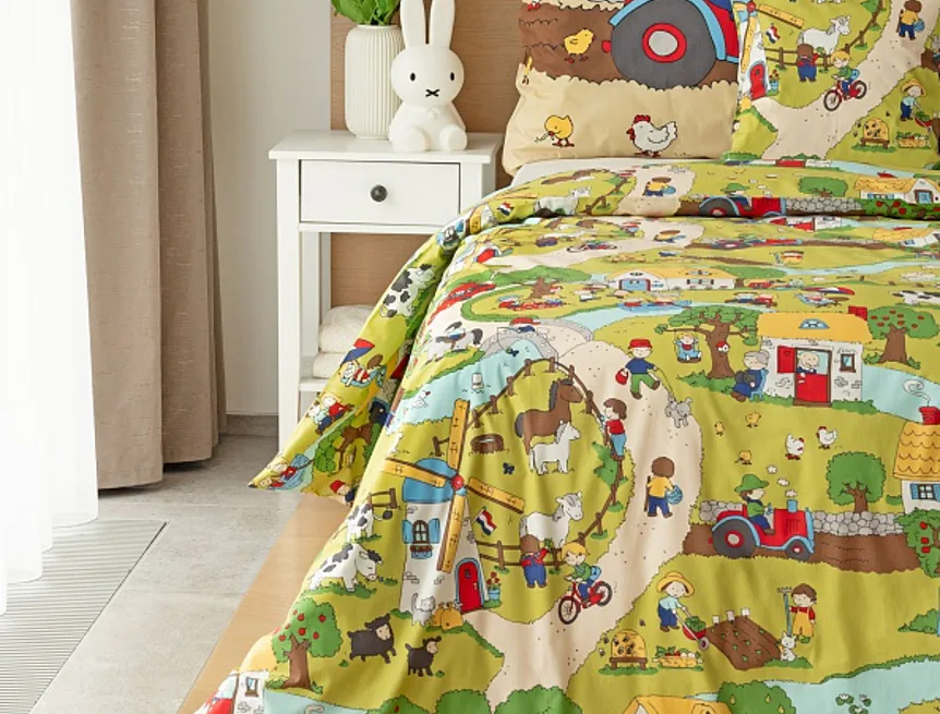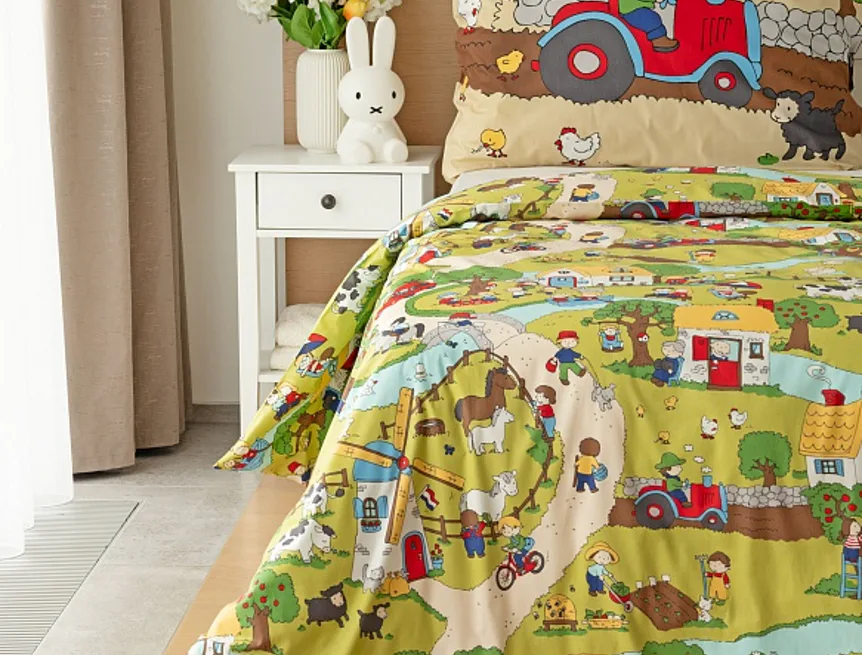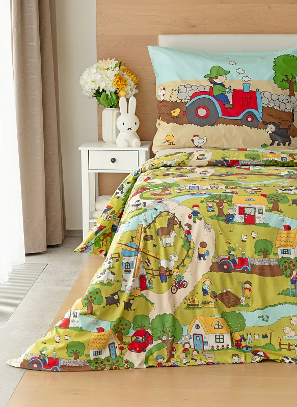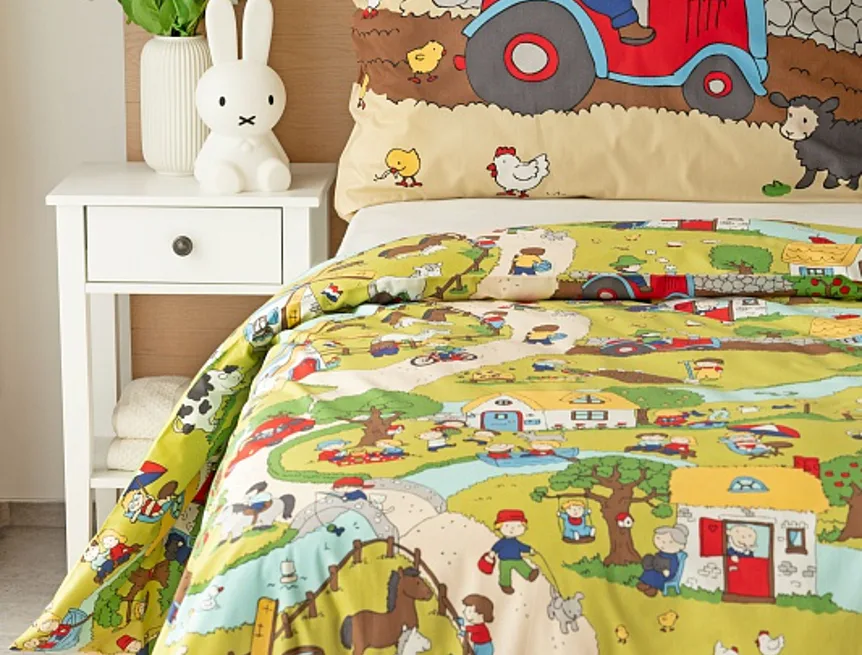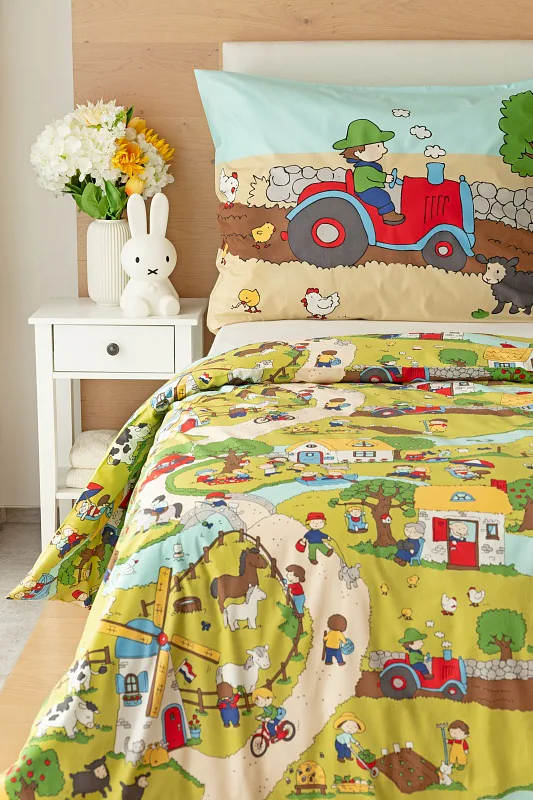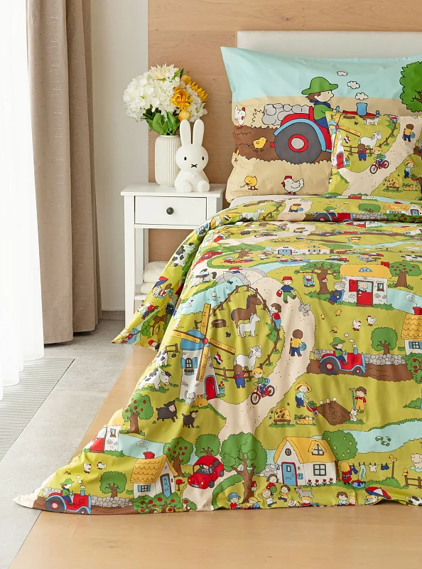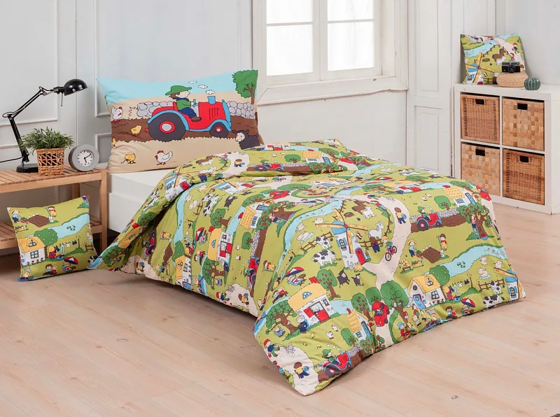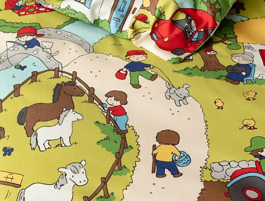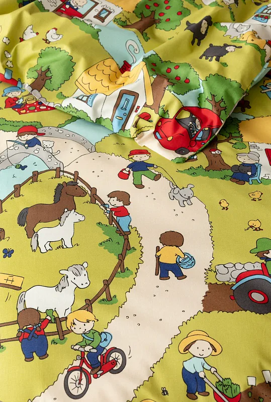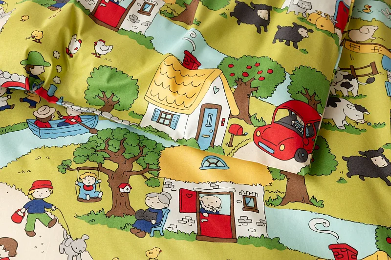 Roztomilá zvířátka, veselí lidé, malé domečky a klikaté cestičky – to vše přináší krásné dětské povlečení Vesnička. Syté a jasné pastelové barvy zpříjemní ranní vstávání a prozáří každý dětský pokojíček.