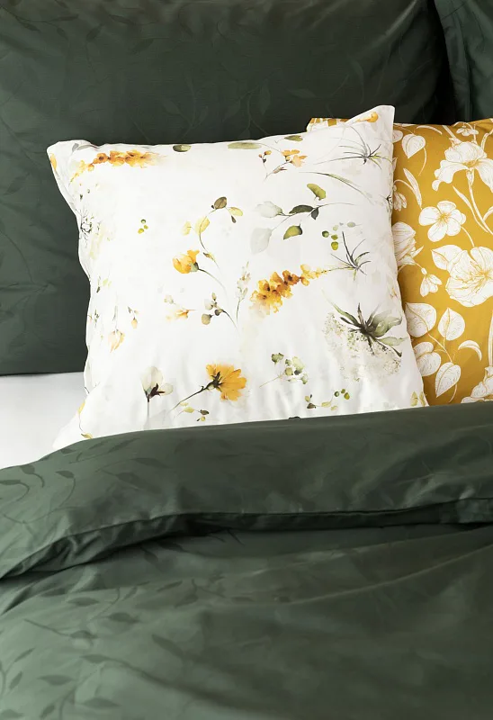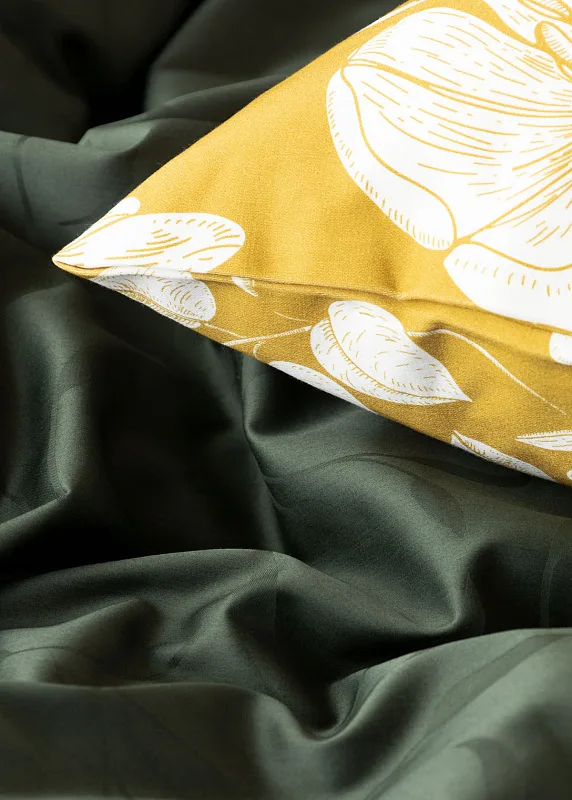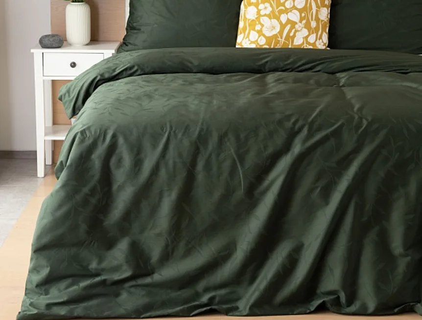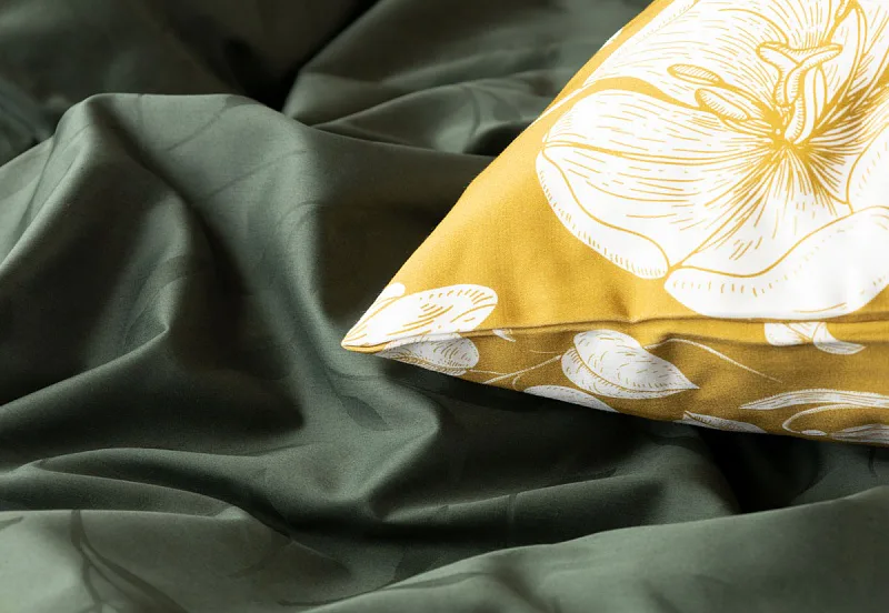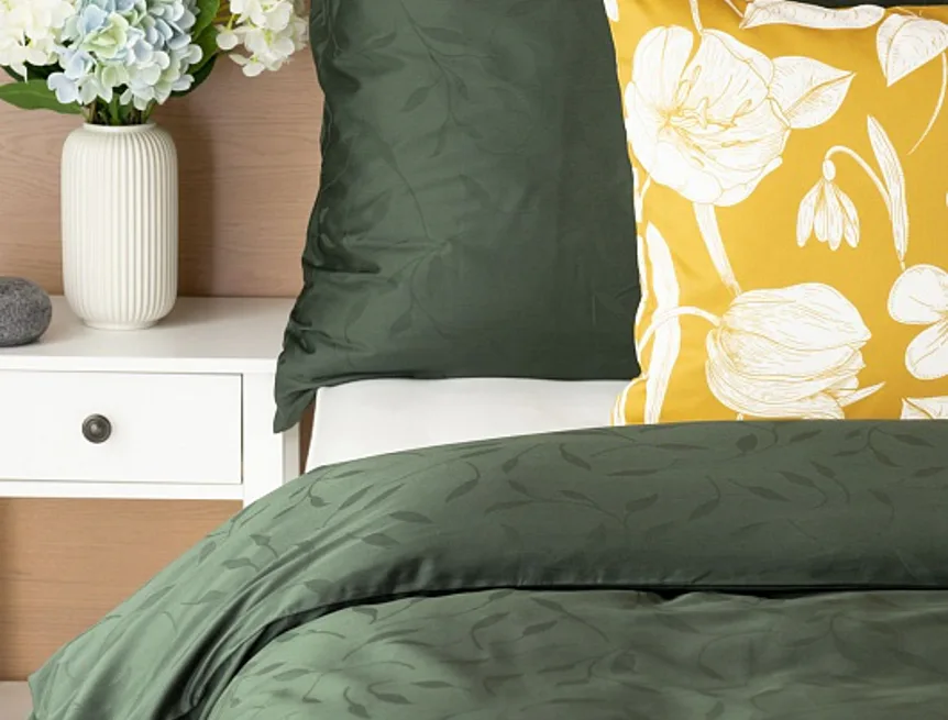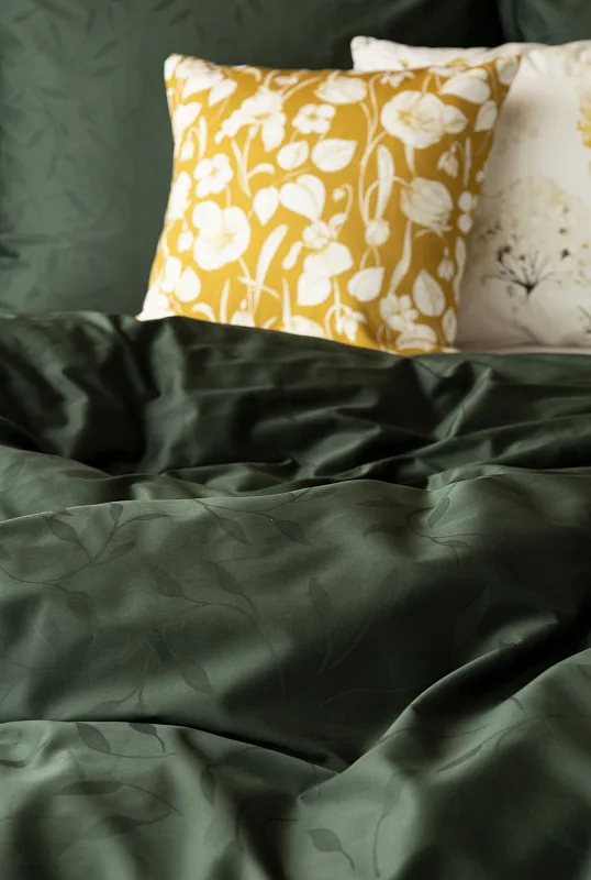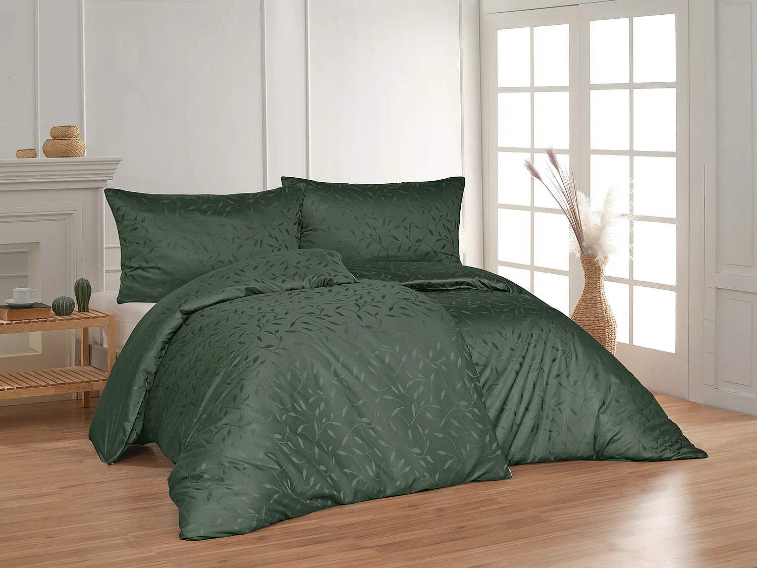 Tato synonyma vystihují žakárové damaškové povlečení VICTORIA s decentním florálním vzorem. Přirozený lesk a jemné vytkané lístky se dokonale snoubí s temně zeleným odstínem.