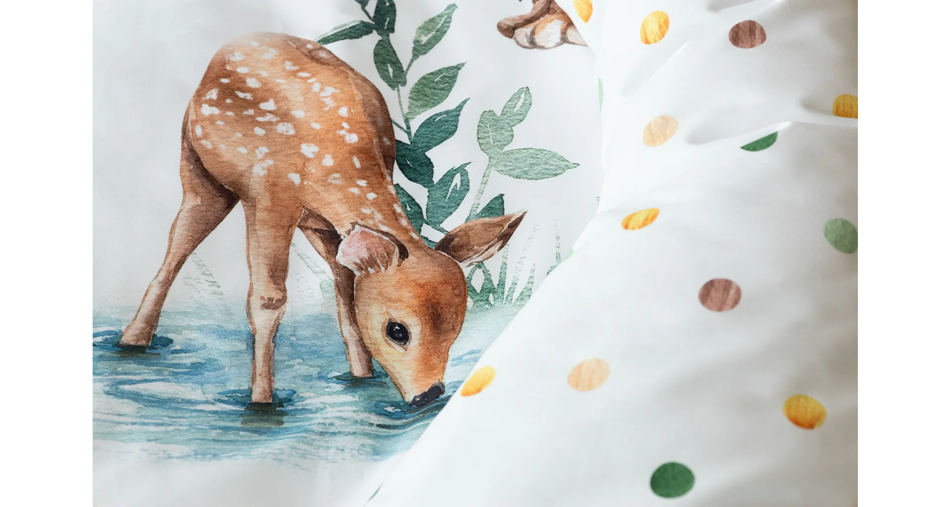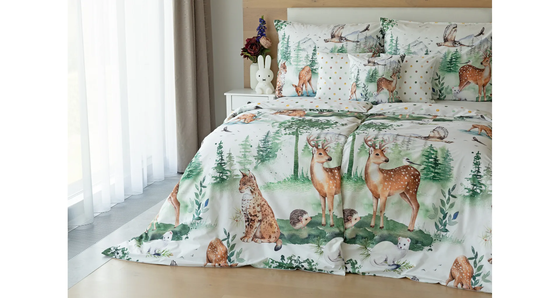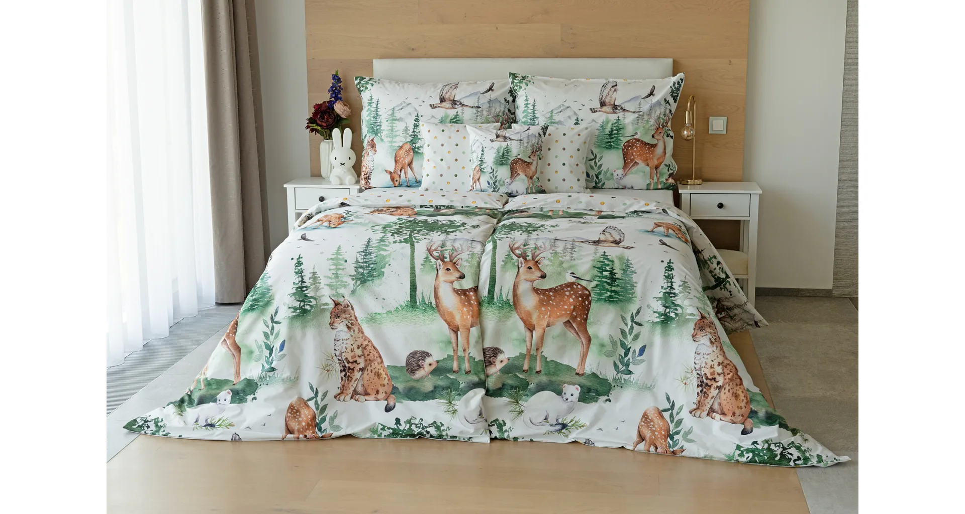 S bavlněným povlečením Wild se dětský pokojíček promění v útulnou říši lesních zvířátek, o kterých můžete před spaním vyprávět příběhy. Podkladem tohoto vzoru se stala ruční malba, která vyniká na povlečení v precizním detailu díky nejmodernějšímu digitálnímu tisku. Vaše děti budou spokojeně snít díky vysoce kvalitnímu materiálu z výběrové 100% bavlny.