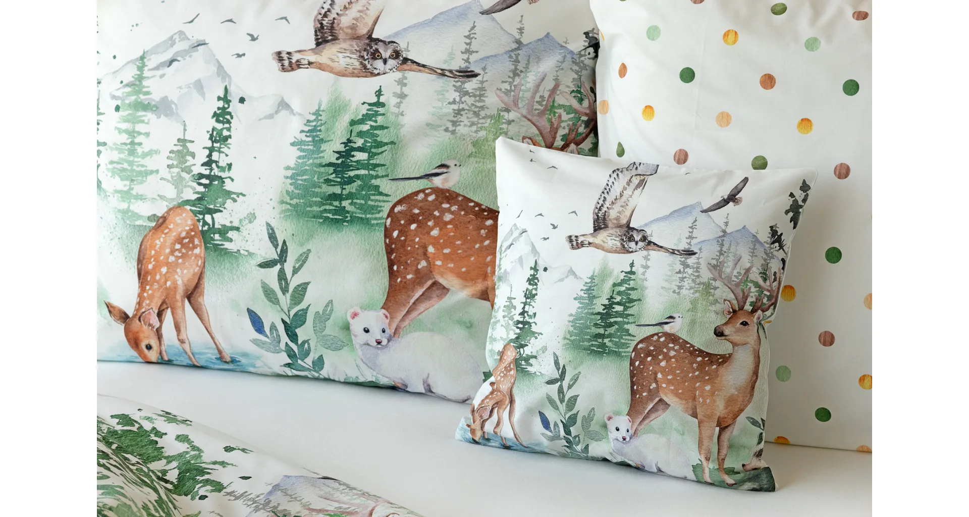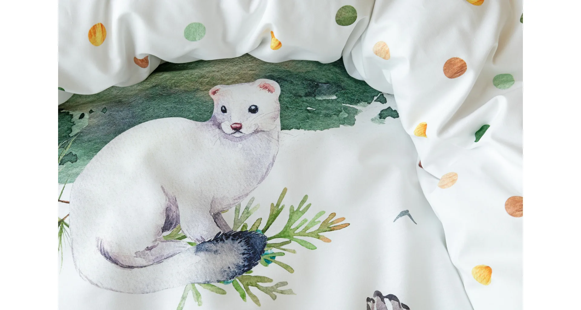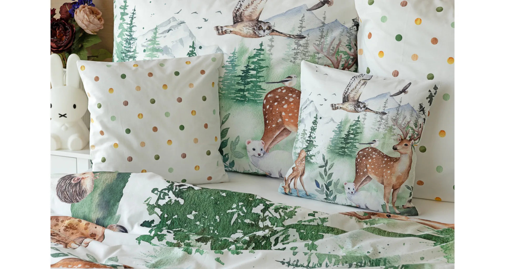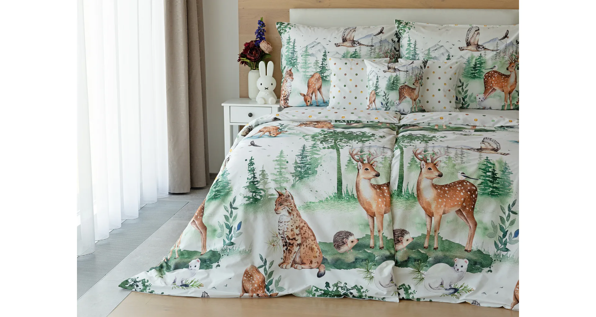 S bavlněným povlečením Wild se dětský pokojíček promění v útulnou říši lesních zvířátek, o kterých můžete před spaním vyprávět příběhy. Podkladem tohoto vzoru se stala ruční malba, která vyniká na povlečení v precizním detailu díky nejmodernějšímu digitálnímu tisku. Vaše děti budou spokojeně snít díky vysoce kvalitnímu materiálu z výběrové 100% bavlny.