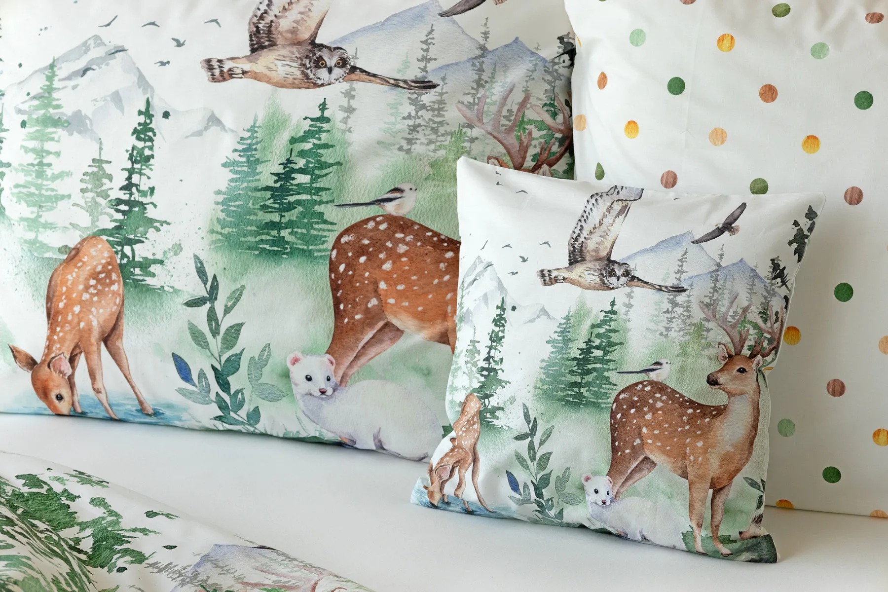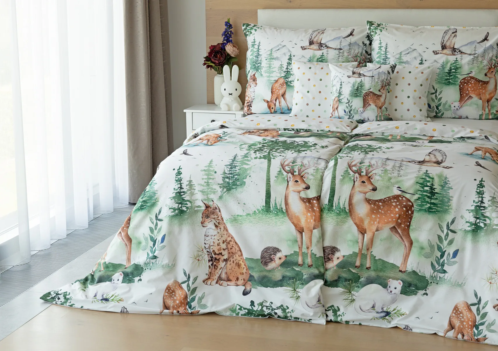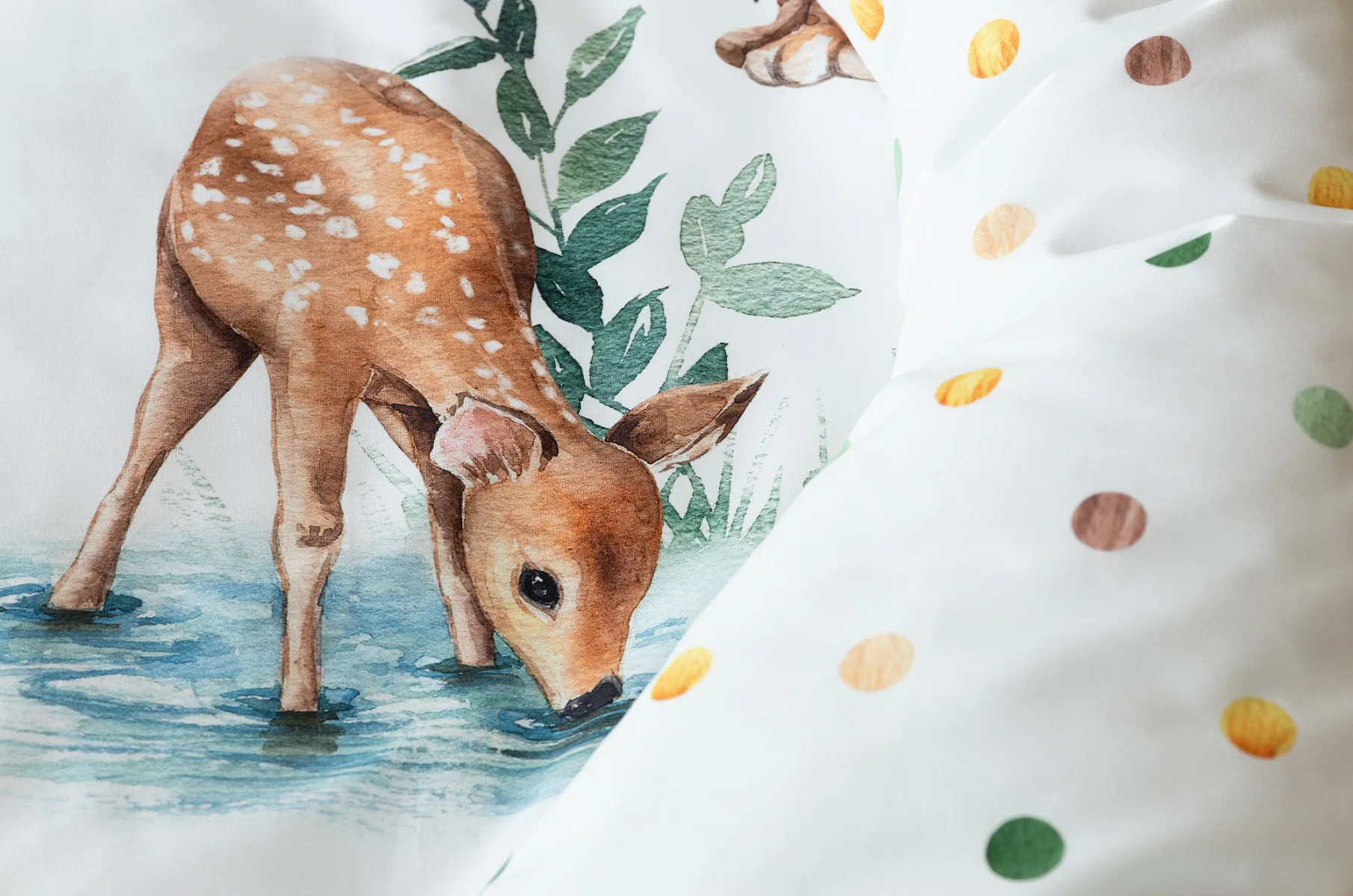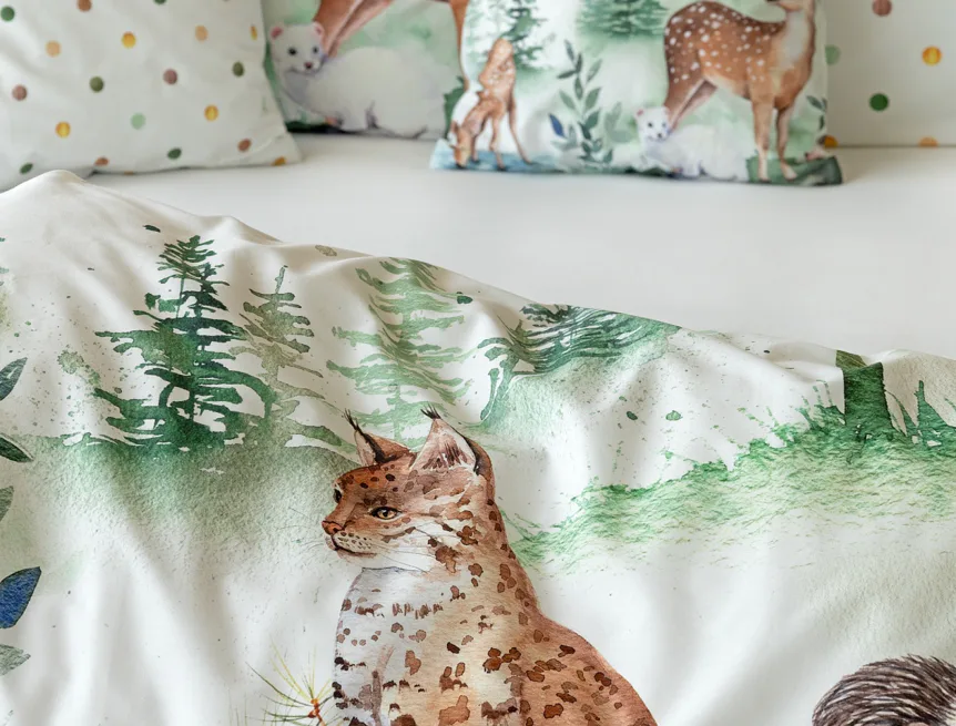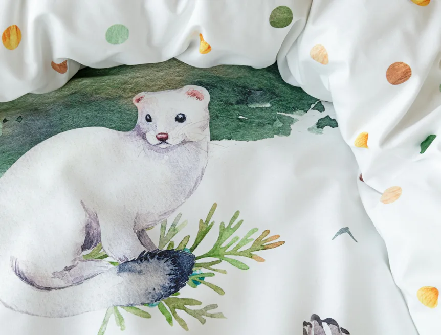 S bavlněným povlečením Wild se dětský pokojíček promění v útulnou říši lesních zvířátek, o kterých můžete před spaním vyprávět příběhy. Podkladem tohoto vzoru se stala ruční malba, která vyniká na povlečení v precizním detailu díky nejmodernějšímu digitálnímu tisku. Vaše děti budou spokojeně snít díky vysoce kvalitnímu materiálu z výběrové 100% bavlny.