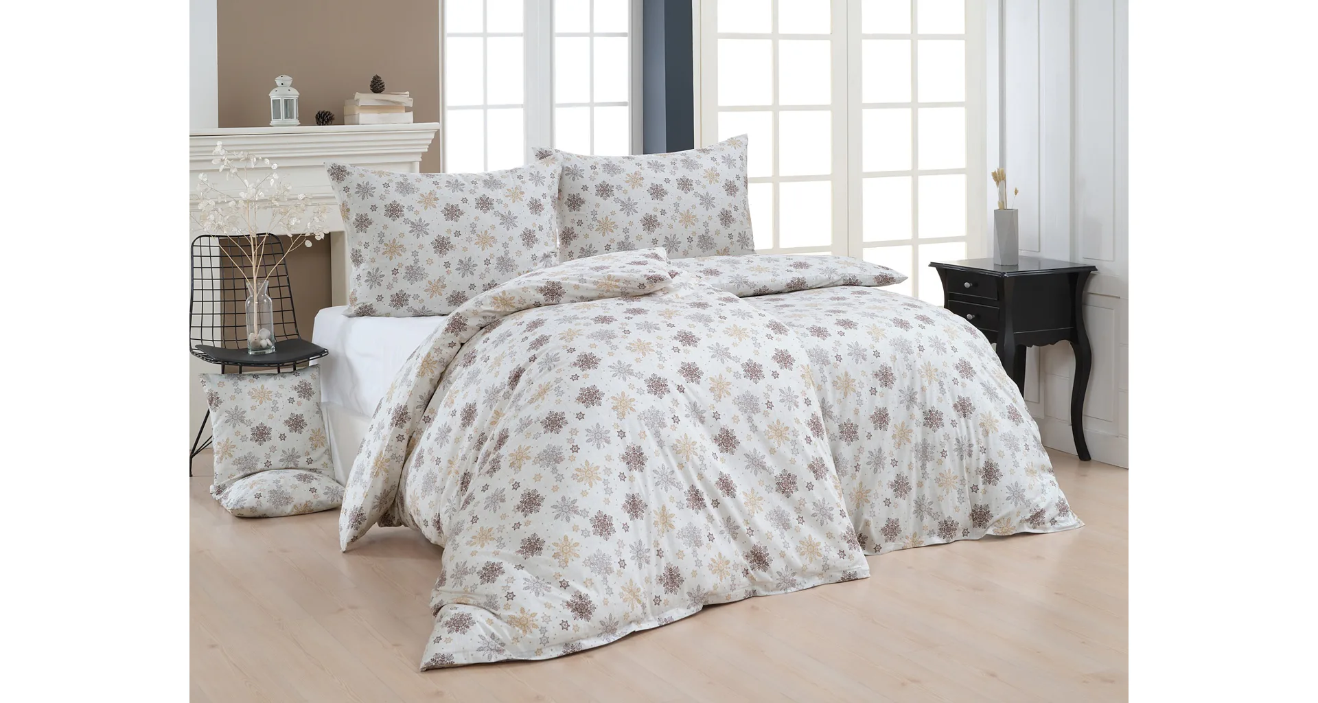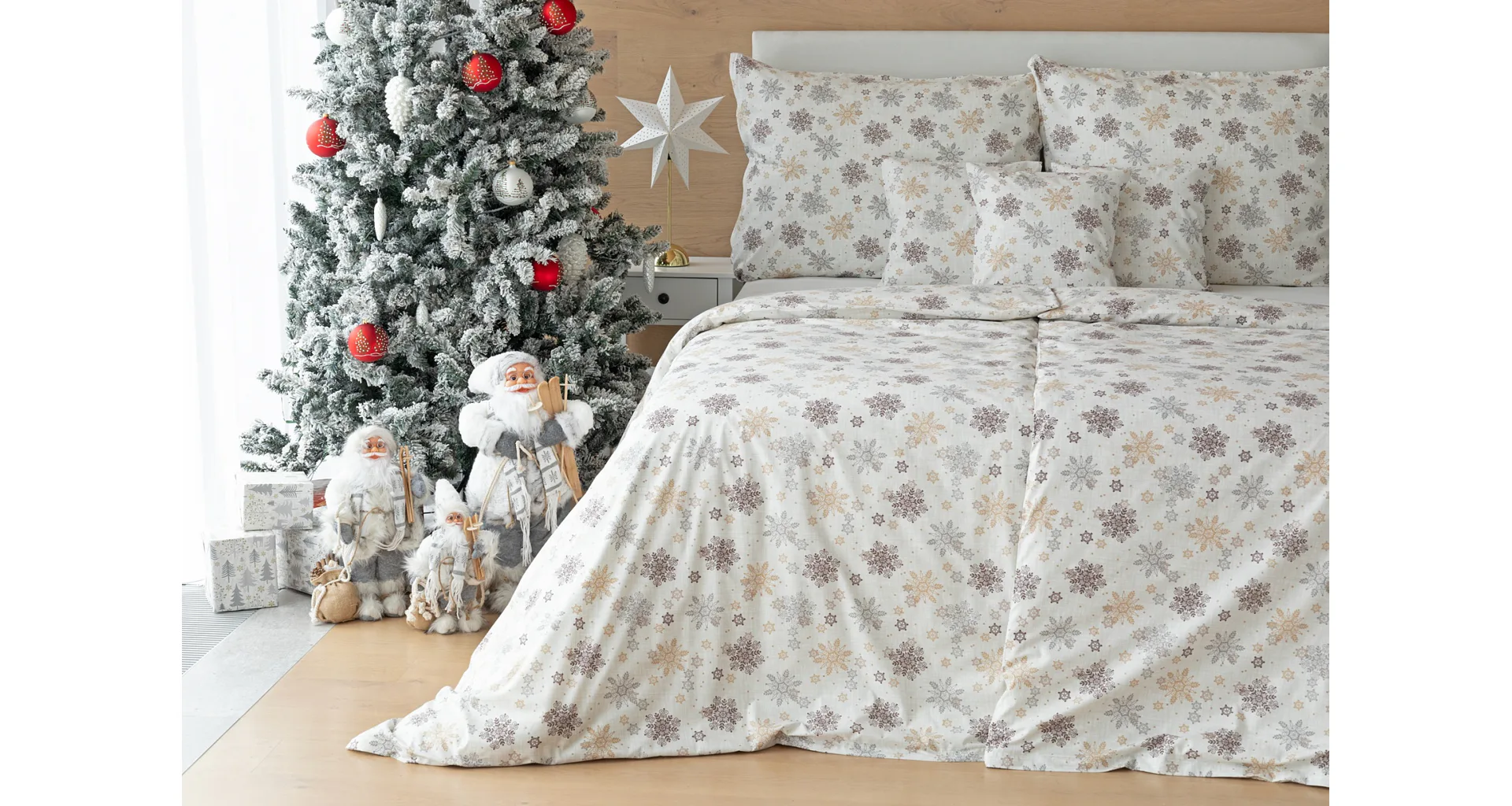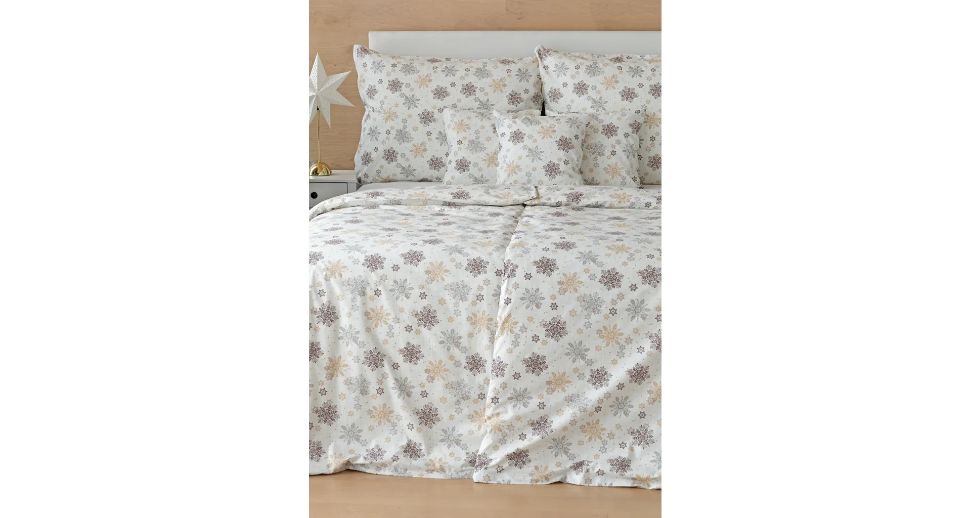 Vánoční povlečení Winter Glow se stane okouzlujícím svátečním klenotem vaší ložnice. Povlečení zdobí po celé ploše menší a větší sněhové vločky v paletě hnědých a šedých tónů. Na světlém podkladu je lehce patrná plátnová struktura, která dodává ložnímu povlečení rustikální nádech. Nechte se hýčkat a zachumlejte se do měkoučkého prémiového flanelu nebo do jemné bavlny deluxe.