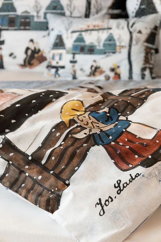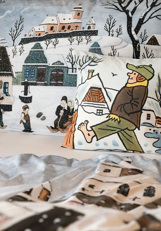 Povlečení z kolekce Josef Lada vyrábíme s ohledem na dostupná tisková data pouze v klasickém rozměru přikrývek 140x200 cm, případně v prodloužené délce 140x220 cm.