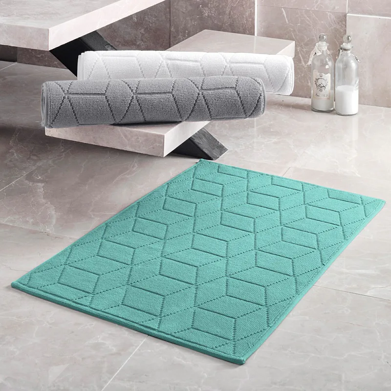 Nepostradatelný doplněk každé koupelny v provedení výběrové bavlny o vysoké gramáži, která zajistí nezaměnitelný komfort. Jednoduchý vytkávaný geometrický vzor na koupelnové předložce v kombinaci s dokonalým odstínem tlumené světle mentolové barvy zútulní Vaši koupelnu.