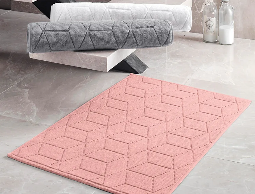 Nepostradatelný doplněk každé koupelny v provedení výběrové bavlny s vysokou gramáží, která zajistí nezaměnitelný komfort. Jednoduchý vytkávaný geometrický vzor na koupelnové předložce v kombinaci s dokonalým pastelovým odstínem růžové barvy zútulní vaši koupelnu.