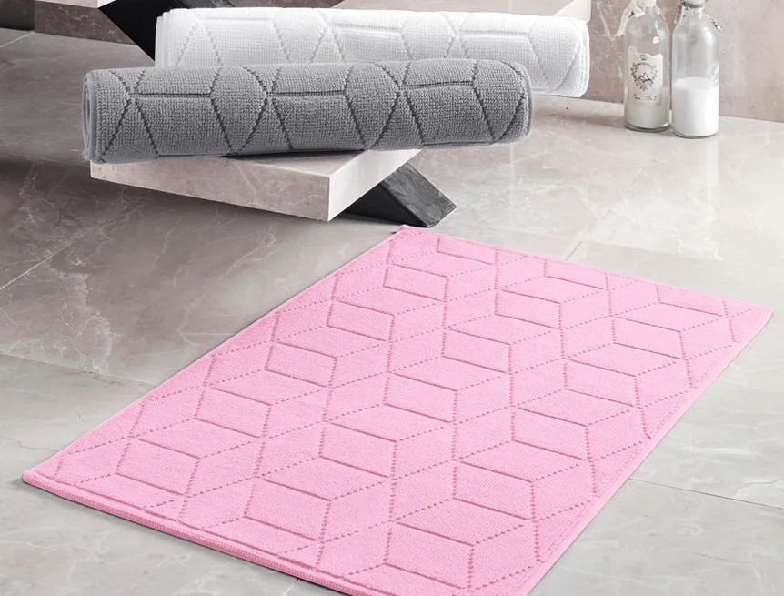 Nepostradatelný doplněk každé koupelny v provedení výběrové bavlny s vysokou gramáží, která zajistí nezaměnitelný komfort. Jednoduchý vytkávaný geometrický vzor na koupelnové předložce v kombinaci s dokonalým odstínem sladce růžové barvy zútulní vaši koupelnu.