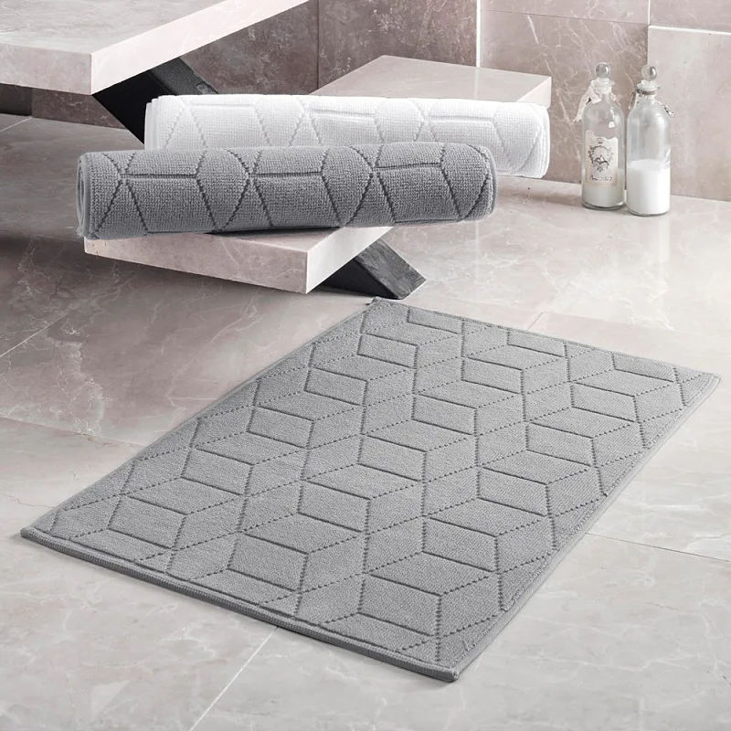 Nepostradatelný doplněk každé koupelny v provedení výběrové bavlny o vysoké gramáži, která zajistí nezaměnitelný komfort. Jednoduchý vytkávaný geometrický vzor na koupelnové předložce v kombinaci s dokonalým odstínem teplé kouřově šedé barvy zútulní Vaši koupelnu.