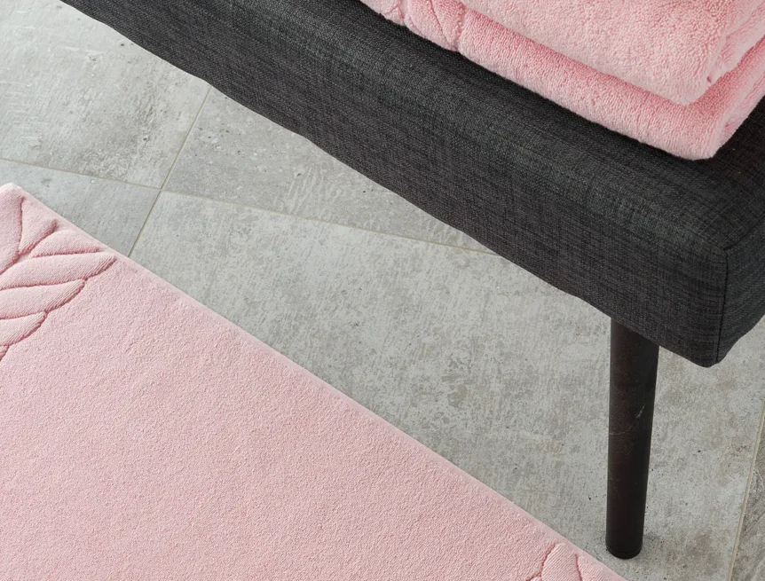 Koupelnová předložka není opatřena protiskluzovou úpravou. Možné prát na 40 °C.