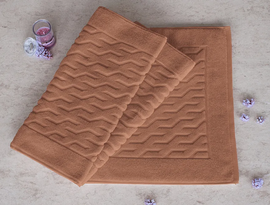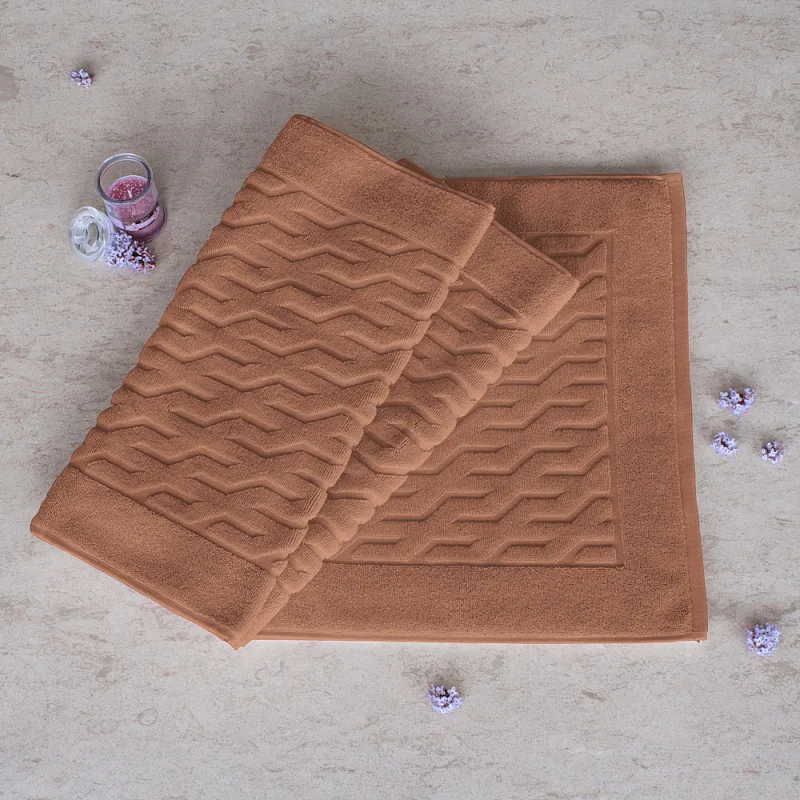 Nepostradatelný doplněk každé koupelny v provedení výběrové bavlny o vysoké gramáži, která zajistí nezaměnitelný komfort. Jednoduchý geometrický vzor na koupelnové předložce v kombinaci s dokonalým odstínem barvy zútulní Vaši koupelnu.