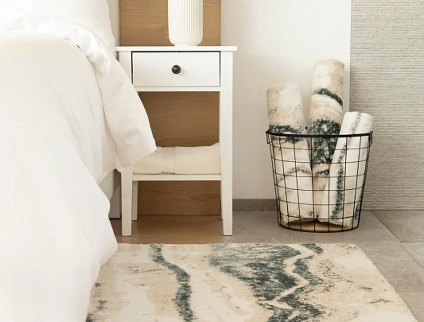 Koupelnové předložky ze série Marble nejsou opatřeny protiskluzovou vrstvou, ale díky kvalitnímu zpracování a zpevněnému okraji drží tvar a dobře přilnou k podkladové ploše.