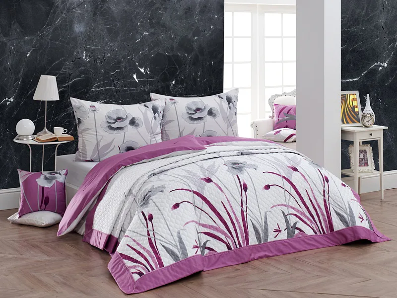 Přehoz Apolena je okouzlující a praktický doplněk, se kterým bude Vaše postel vždy dokonale ustlaná. Jako výplň je použito vrstvené duté vlákno. Barevné provedení odpovídá vzoru na stejnojmenném povlečení. Každá strana přehozu je jiná (vrchní odpovídá fotografii, spodní je světlá s drobnějším motivem). Povrchový materiál je 100% bavlněná látka, přehoz je navíc doplněný o barevně sladěnou paspuli. Po celé ploše je aplikováno ozdobné prošití, aby se zajistila stabilita výplně a současně podtrhl celkový vzhled přehozu.