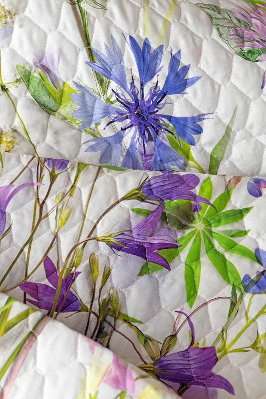 Přehoz Bluebell je jedinečný estetický a praktický doplněk, se kterým bude vaše postel vždy dokonale ustlaná. Jako výplň je použito vrstvené duté vlákno se sníženou gramáží. Povrchový materiál tvoří 100% bavlněná látka ve stejném dezénu jako ložní povlečení. Po celé ploše je aplikováno ozdobné prošití, aby se zajistila stabilita výplně a současně podtrhl celkový vzhled přehozu.