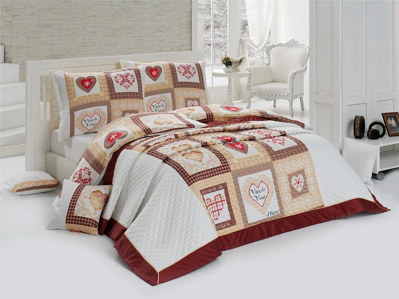 Přehoz HARMONY TERRA je jedinečný, estetický a praktický doplněk, se kterým bude Vaše postel vždy dokonale ustlaná. Jako výplň je použito vrstvené duté vlákno, povrchový materiál je 100% bavlněná látka, ve stejném dezénu jako ložní povlečení. Po celé ploše je aplikováno ozdobné prošití tak, aby se zajistila stabilita výplně a současně podtrhl celkový vzhled přehozu.