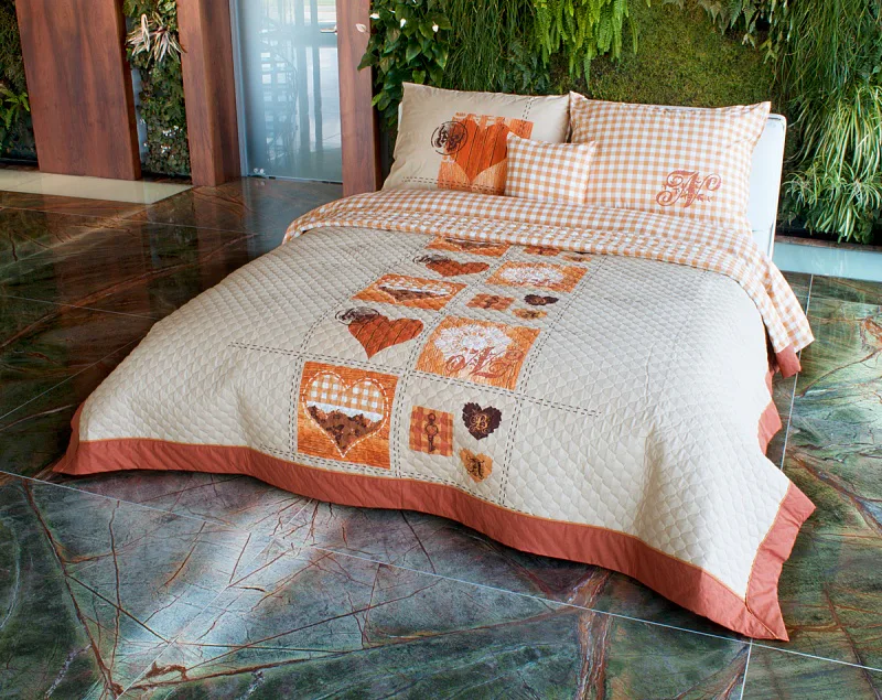Přehoz HEART je jedinečný, estetický a praktický doplněk, se kterým bude Vaše postel vždy dokonale ustlaná. Jako výplň je použito vrstvené duté vlákno, povrchový materiál je 100% bavlněná látka, ve stejném dezénu jako ložní povlečení. Po celé ploše je aplikováno ozdobné prošití tak, aby se zajistila stabilita výplně a současně podtrhl celkový vzhled přehozu.