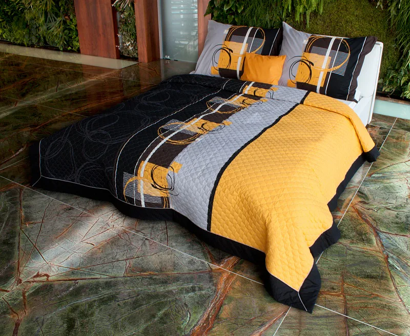 Přehoz JAMISSON je jedinečný, estetický a praktický doplněk, se kterým bude Vaše postel vždy dokonale ustlaná. Jako výplň je použito vrstvené duté vlákno, povrchový materiál je 100% bavlněná látka, ve stejném dezénu jako ložní povlečení. Po celé ploše je aplikováno ozdobné prošití tak, aby se zajistila stabilita výplně a současně podtrhl celkový vzhled přehozu.
