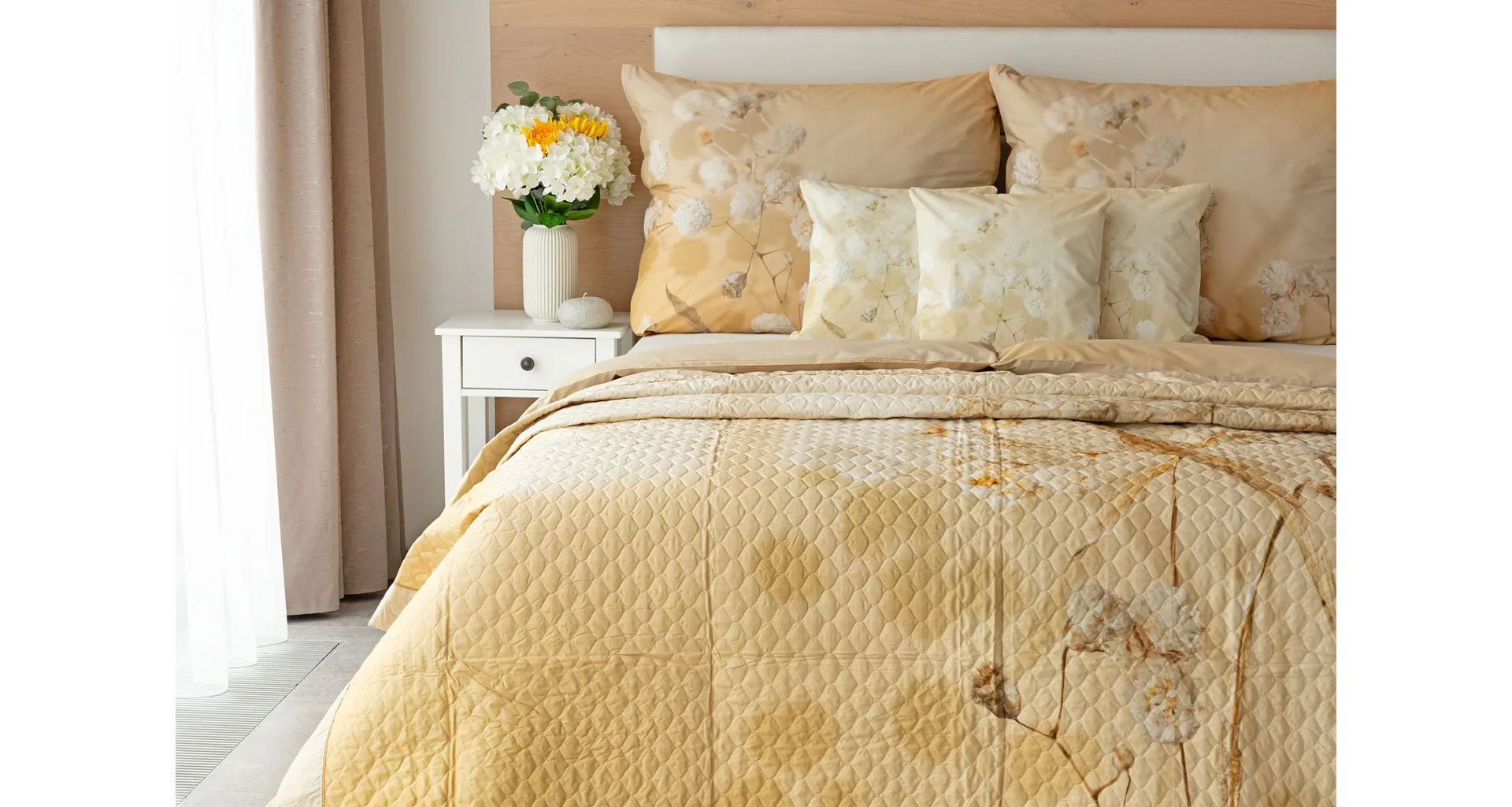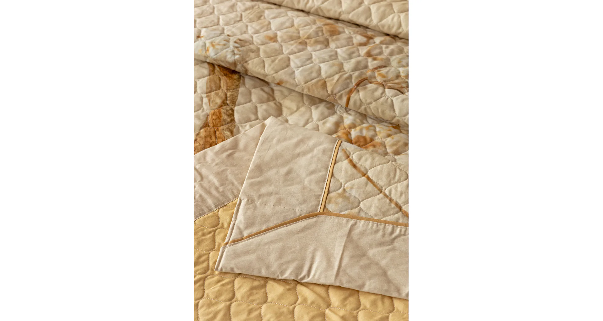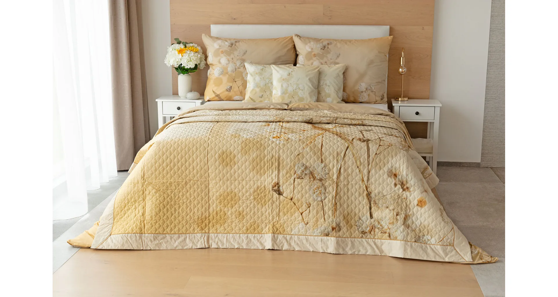 Přehoz Julia je jedinečný estetický a praktický doplněk, se kterým bude vaše postel vždy dokonale ustlaná. Jako výplň je použito vrstvené duté vlákno se sníženou gramáží. Povrchový materiál tvoří 100% bavlněná látka ve stejném dezénu jako ložní povlečení. Po celé ploše je aplikováno ozdobné prošití, aby se zajistila stabilita výplně a současně podtrhl celkový vzhled přehozu.
