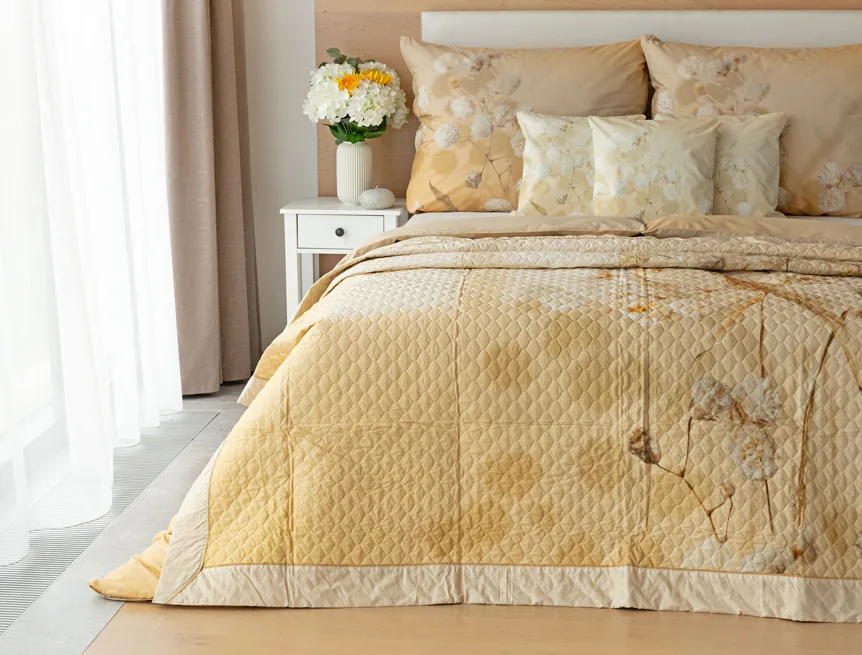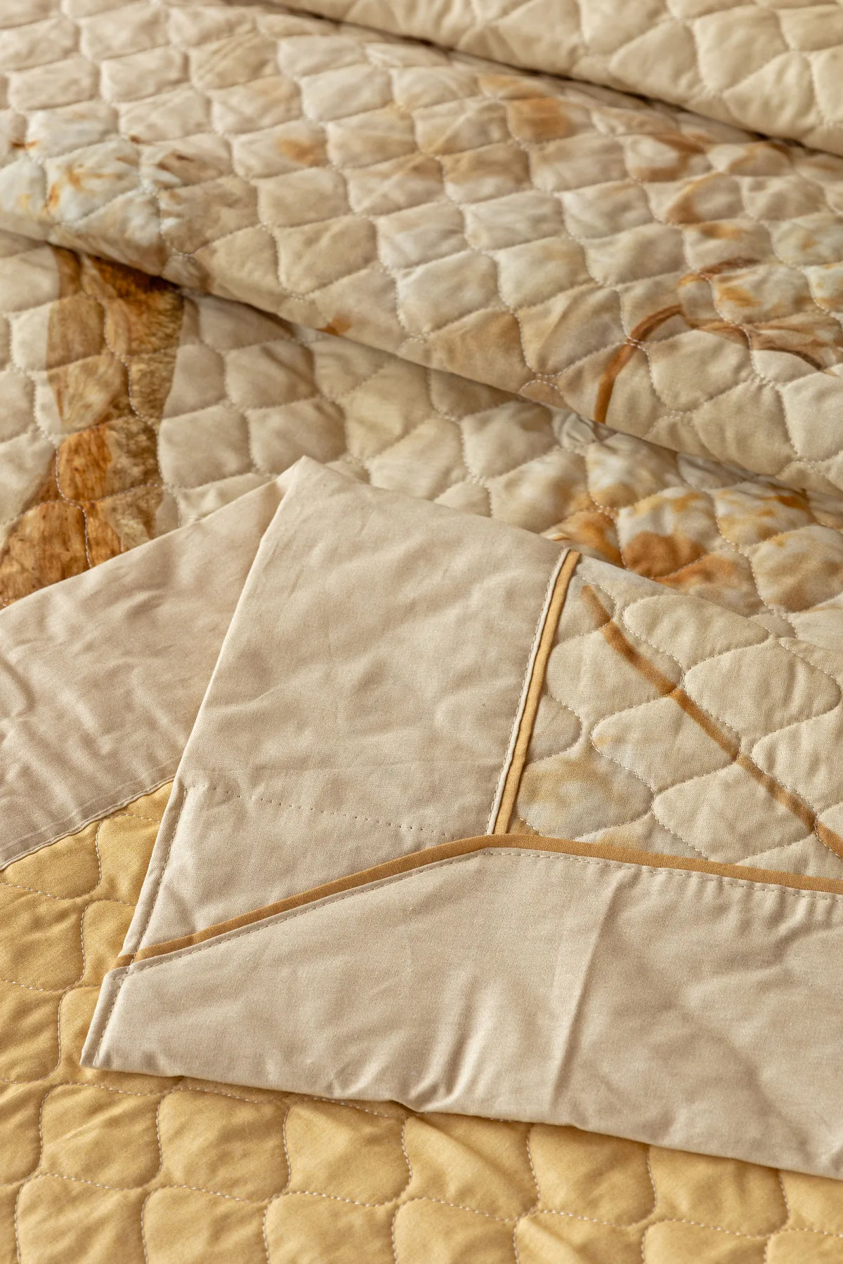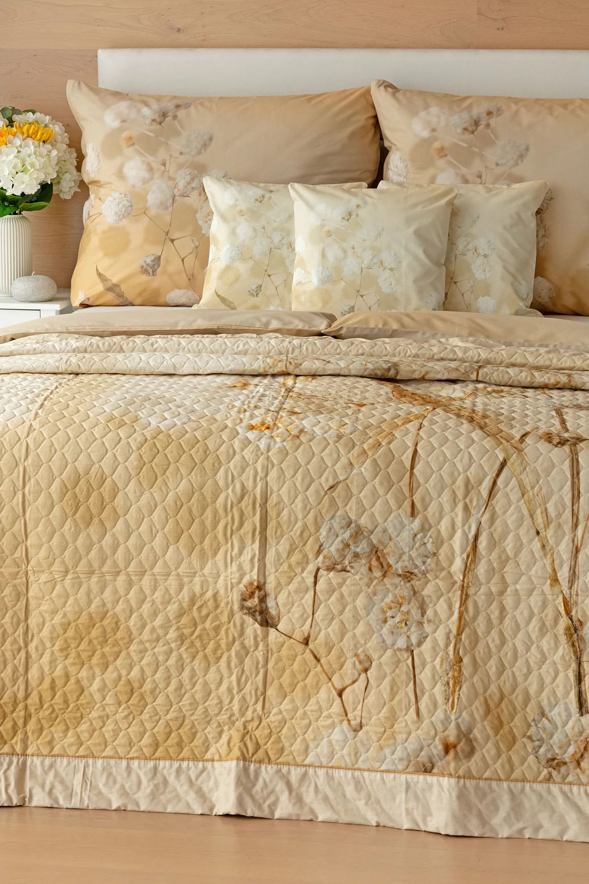 Přehoz Julia je jedinečný estetický a praktický doplněk, se kterým bude vaše postel vždy dokonale ustlaná. Jako výplň je použito vrstvené duté vlákno se sníženou gramáží. Povrchový materiál tvoří 100% bavlněná látka ve stejném dezénu jako ložní povlečení. Po celé ploše je aplikováno ozdobné prošití, aby se zajistila stabilita výplně a současně podtrhl celkový vzhled přehozu.