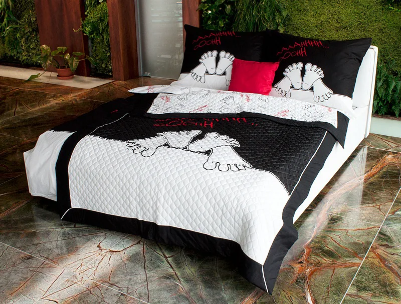 Přehoz LOVE NIGHT je jedinečný, estetický a praktický doplněk, se kterým bude Vaše postel vždy dokonale ustlaná. Jako výplň je použito vrstvené duté vlákno, potvrchový materiál tvoří 100 % bavlněná látka, ve stejném dezénu jako ložní povlečení. Po celé ploše je aplikováno ozdobné prošití, tak aby se zajistila stabilita výplně a současně podtrhl celkový vzhled přehozu.K tomuto přehozu je možné zakoupit i i povlečení stejného dezénu aby vaše spaní bylo dokonalejší.