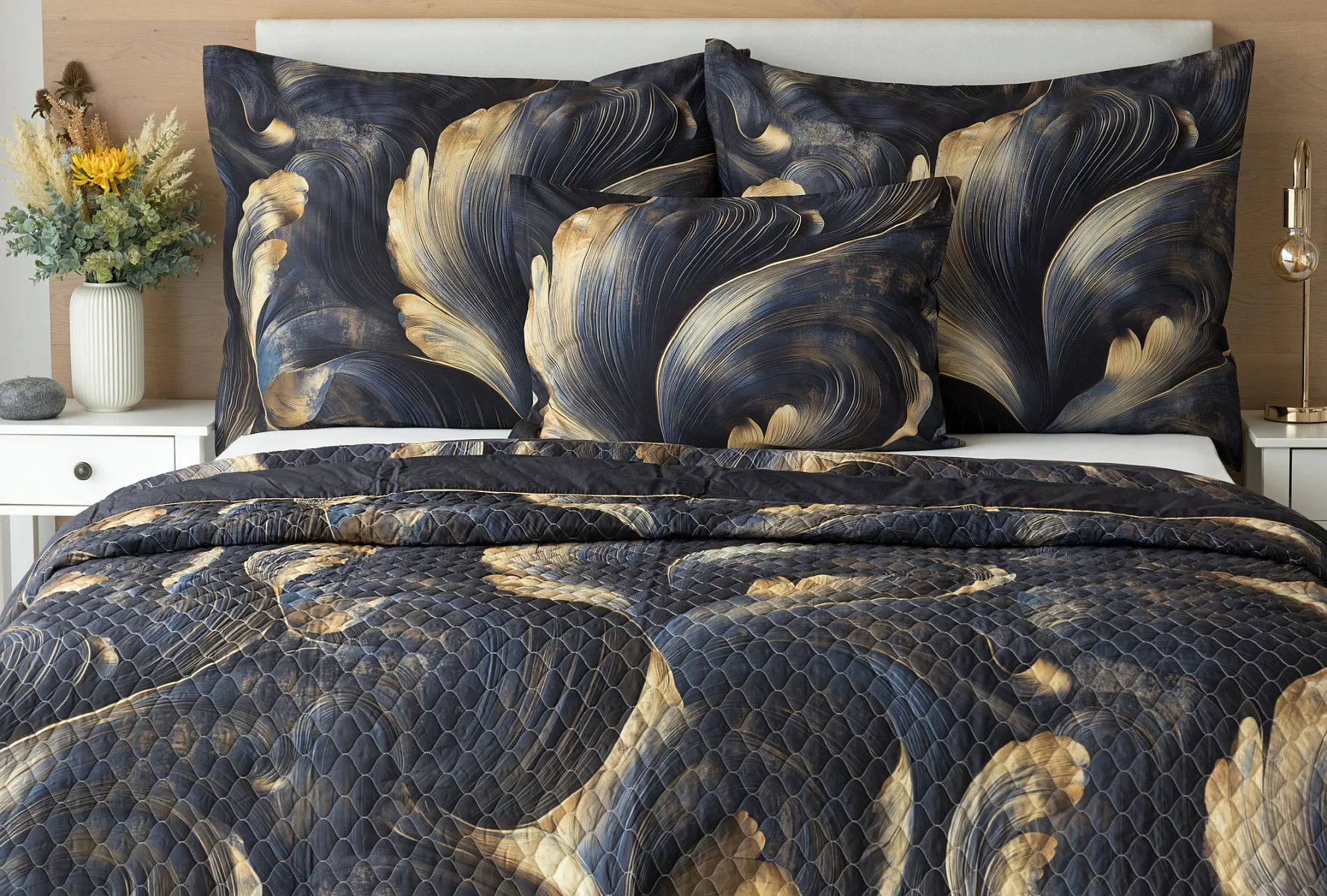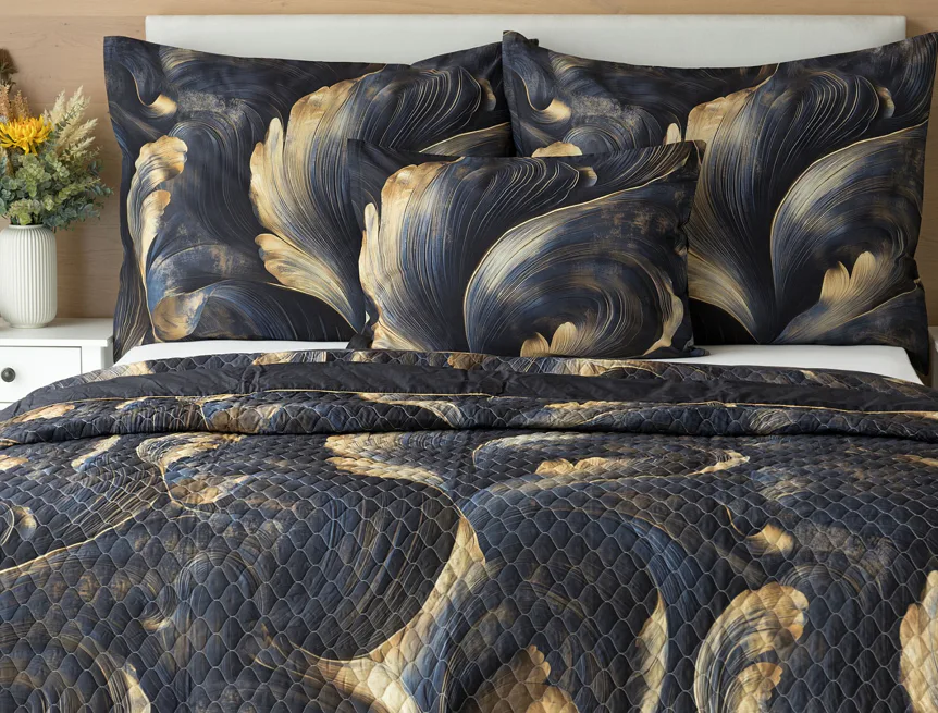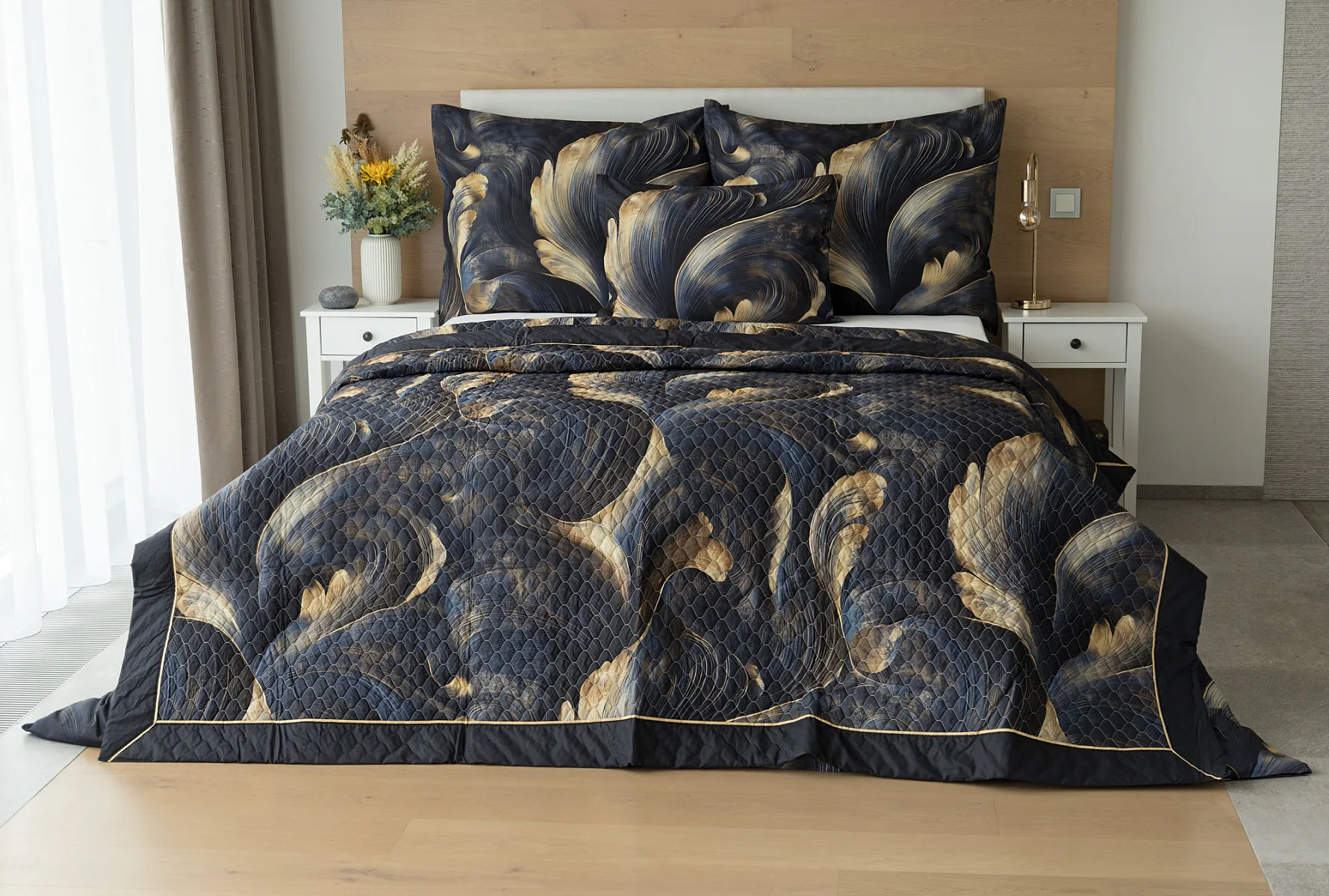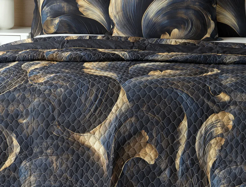 Přehoz Lyra je jedinečný estetický a praktický doplněk, se kterým bude vaše postel vždy dokonale ustlaná. Jako výplň je použito vrstvené duté vlákno se sníženou gramáží. Povrchový materiál tvoří 100% bavlněná látka ve stejném dezénu jako ložní povlečení. Po celé ploše je aplikováno ozdobné prošití, aby se zajistila stabilita výplně a současně podtrhl celkový vzhled přehozu.