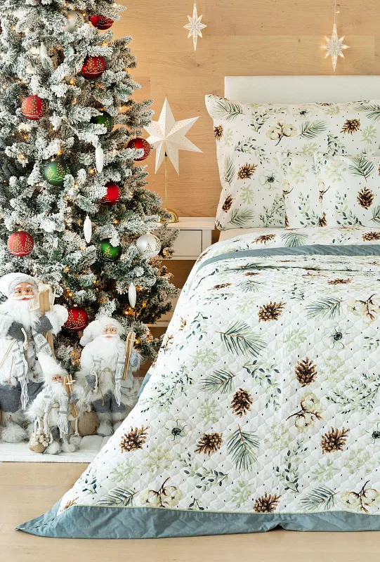 Přehoz Winter je jedinečný estetický a praktický doplněk, se kterým bude vaše postel vždy dokonale ustlaná. Jako výplň je použito vrstvené duté vlákno se sníženou gramáží. Povrchový materiál tvoří 100% bavlněná látka ve stejném dezénu jako ložní povlečení. Po celé ploše je aplikováno ozdobné prošití, aby se zajistila stabilita výplně a současně podtrhl celkový vzhled přehozu.