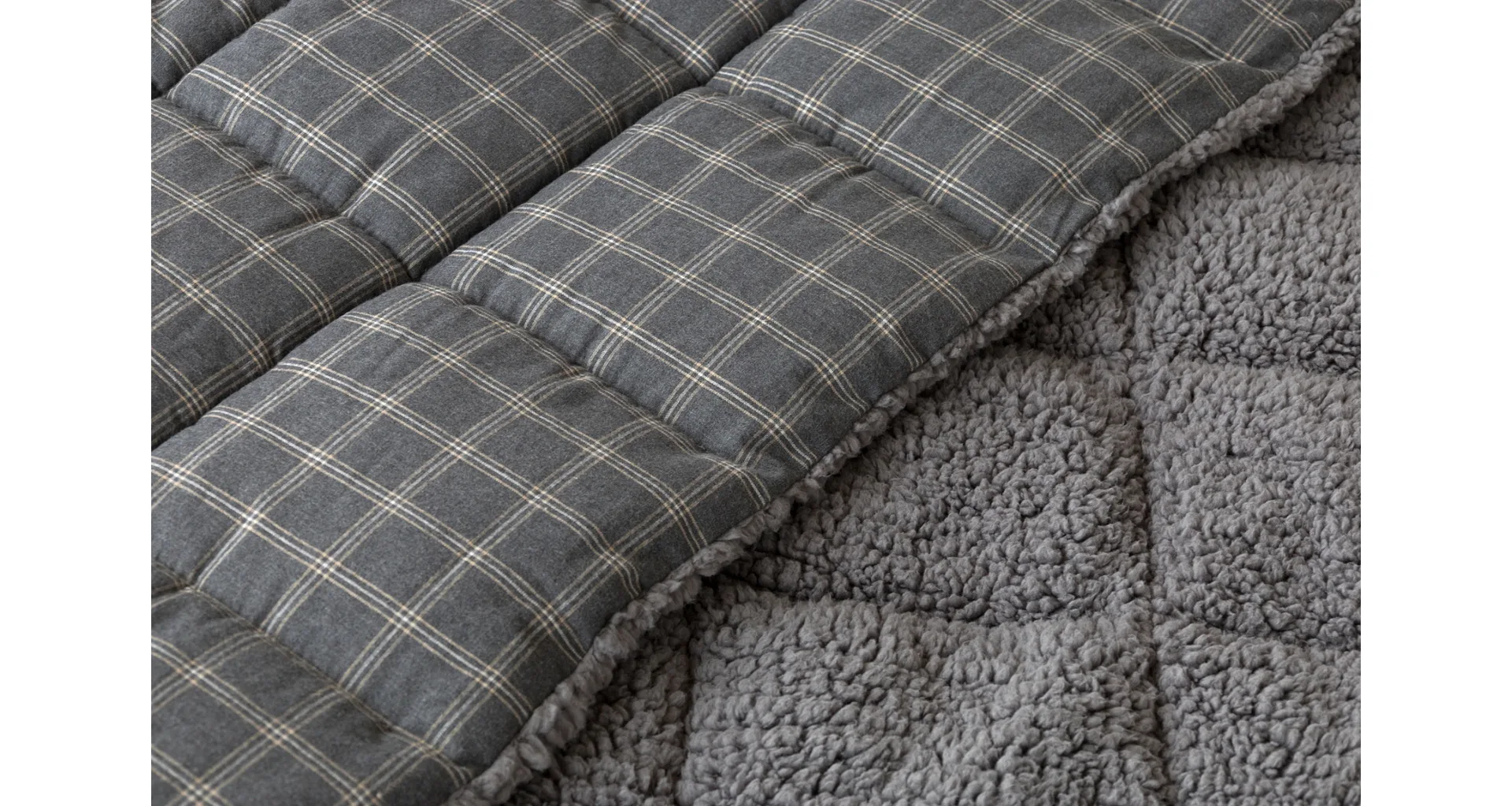 Nová kolekce prošívaných flanelových přikrývek s beránkem vám zajistí jedinečný tepelný komfort a úžasné pohodlí během sychravých dnů, chladných večerů a zimních nocí. Vrchní stranu prošívané deky tvoří hebký flanel s jemným chloupkem, spodní stranu pokrývá hřejivý nadýchaný beránek. Vnitřní výplň s plošnou gramáží 250 g/m2 tvoří mikrogelové polyesterové nano vlákno, které je prodyšné, lehké a nesléhá. Stabilitu výplně zajišťuje precizní prošití po celé ploše.
