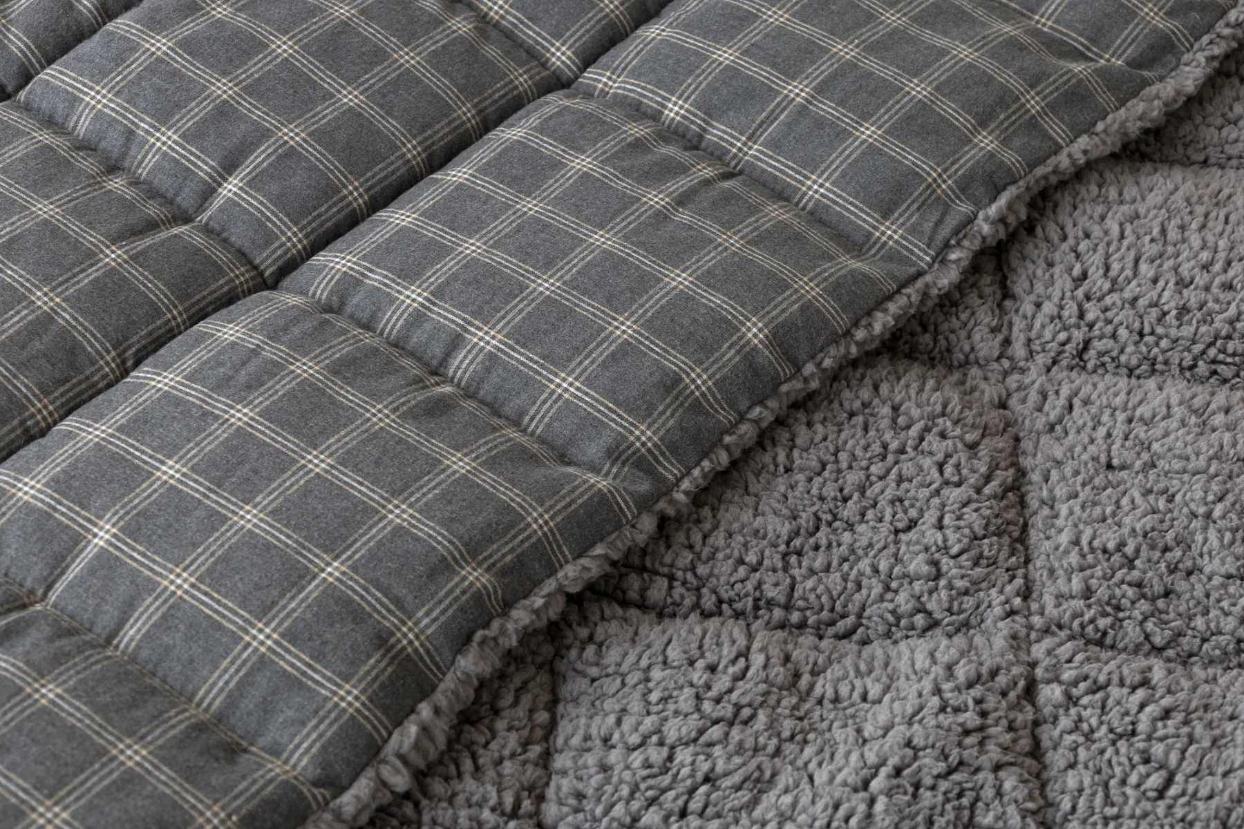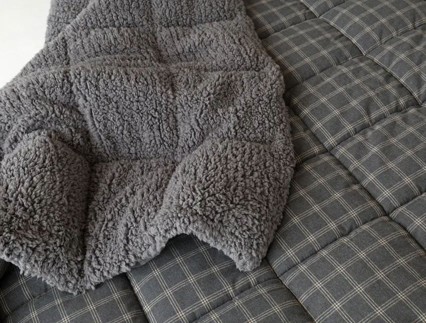 Nová kolekce prošívaných flanelových přikrývek s beránkem vám zajistí jedinečný tepelný komfort a úžasné pohodlí během sychravých dnů, chladných večerů a zimních nocí. Vrchní stranu prošívané deky tvoří hebký flanel s jemným chloupkem, spodní stranu pokrývá hřejivý nadýchaný beránek. Vnitřní výplň s plošnou gramáží 250 g/m2 tvoří mikrogelové polyesterové nano vlákno, které je prodyšné, lehké a nesléhá. Stabilitu výplně zajišťuje precizní prošití po celé ploše.