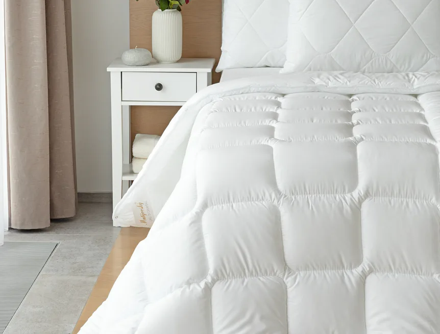 Přikrývky "čtyři roční období" z naší nové řady DIAMANT vás nadchnou všestranností, která vám umožní využití jedné deky po celý rok! Spojením lehké letní přikrývky s celoroční variantou vznikne úžasně hřejivá přikrývka vhodná na zimní měsíce. V letních měsících jednu vrstvu jednoduše odepnete a uložíte na zimu.