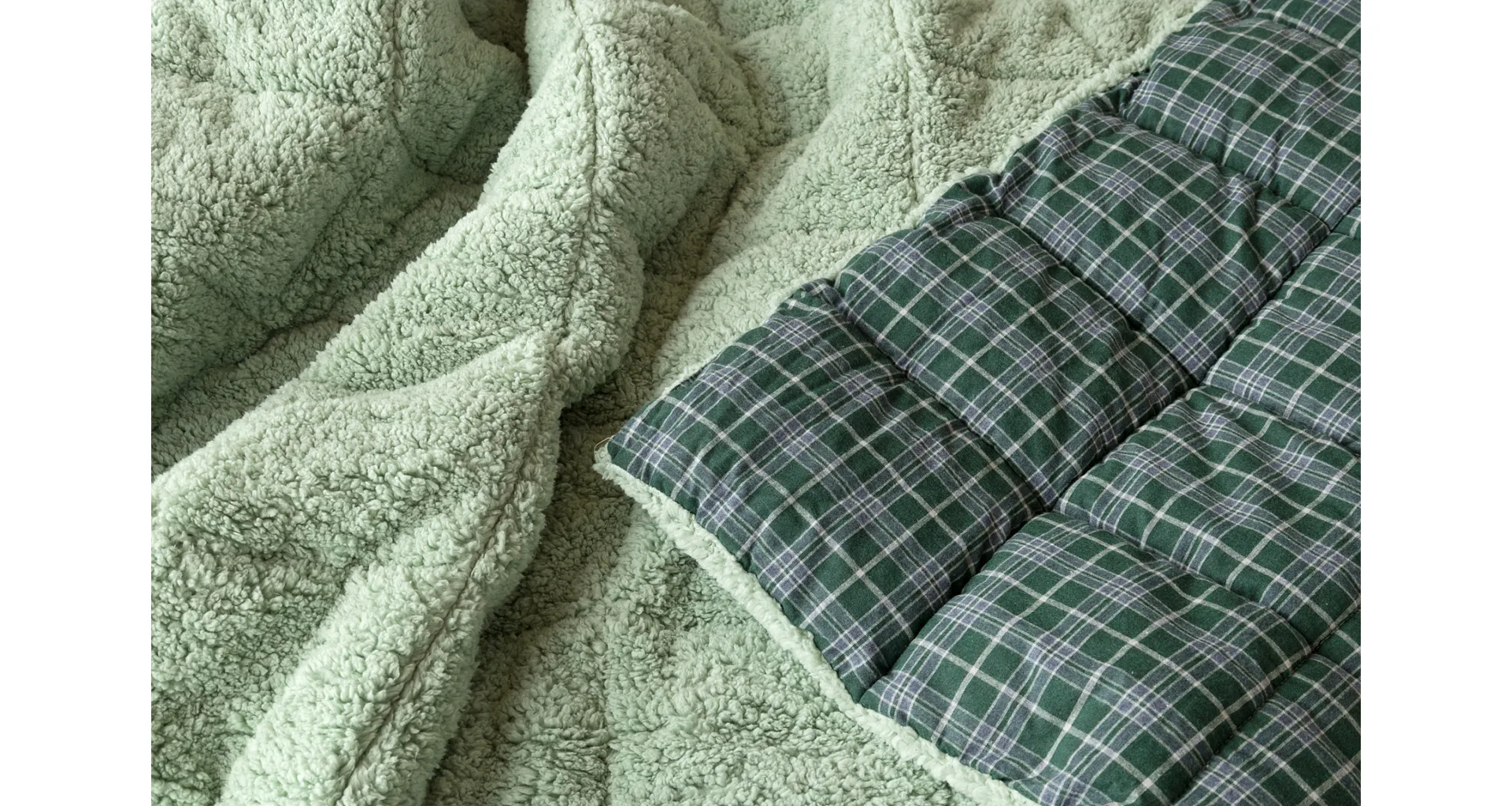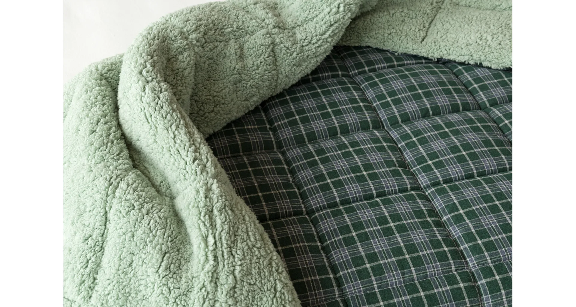 Nová kolekce prošívaných flanelových přikrývek s beránkem vám zajistí jedinečný tepelný komfort a úžasné pohodlí během sychravých dnů, chladných večerů a zimních nocí. Vrchní stranu prošívané deky tvoří hebký flanel s jemným chloupkem, spodní stranu pokrývá hřejivý nadýchaný beránek. Vnitřní výplň s plošnou gramáží 250 g/m2 tvoří mikrogelové polyesterové nano vlákno, které je prodyšné, lehké a nesléhá. Stabilitu výplně zajišťuje precizní prošití po celé ploše.