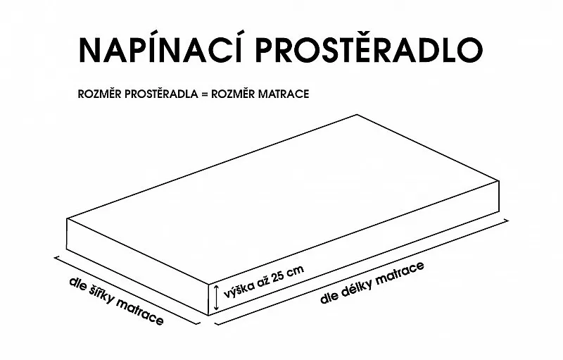 Rozměr prostěradla koresponduje s plochou matrace, výška boků může být až 25 cm.